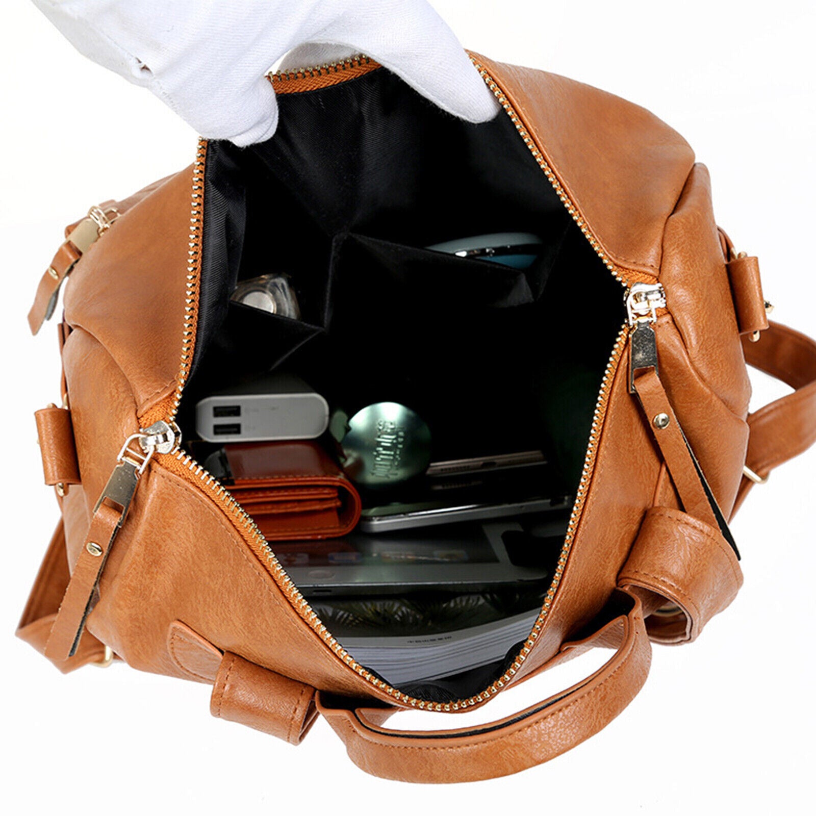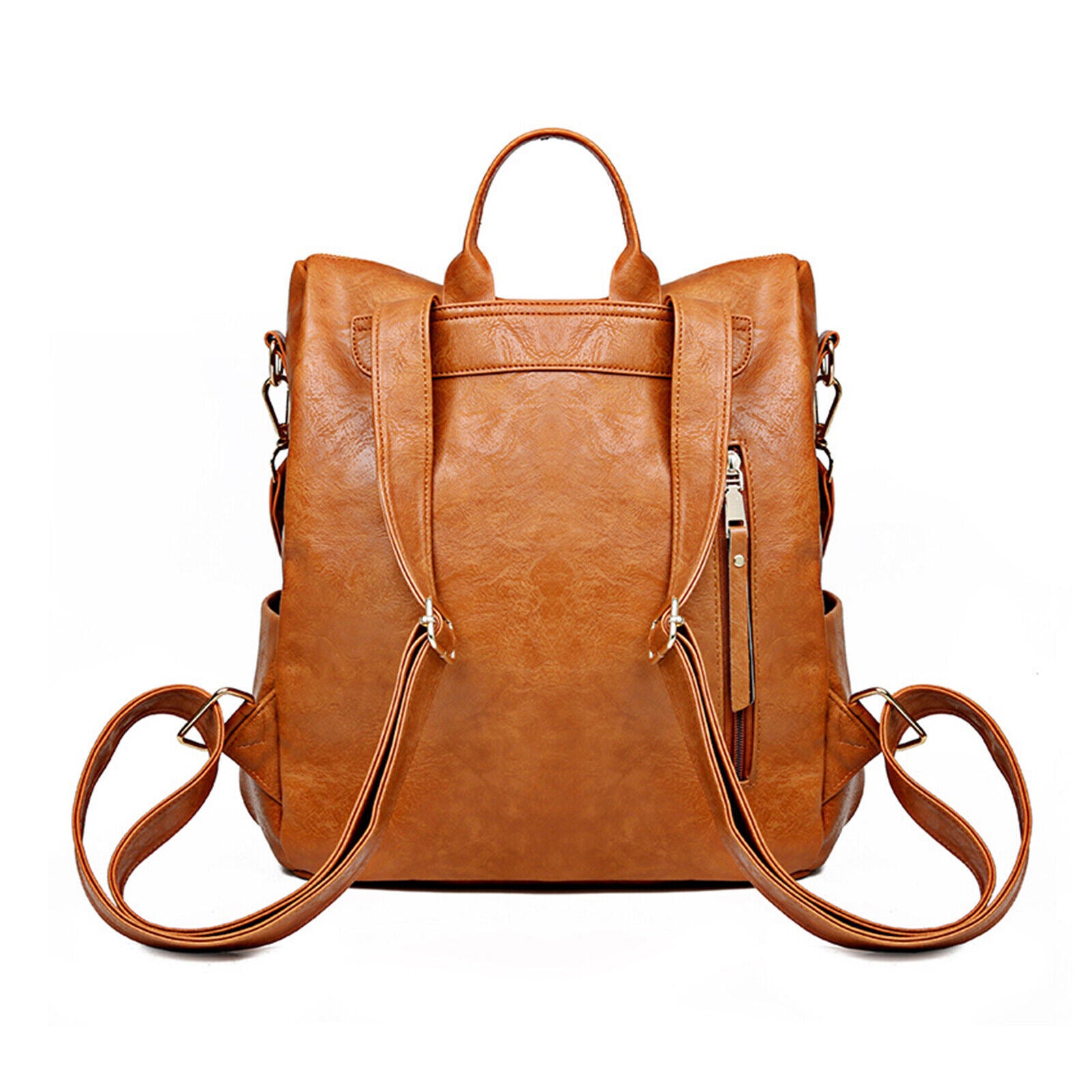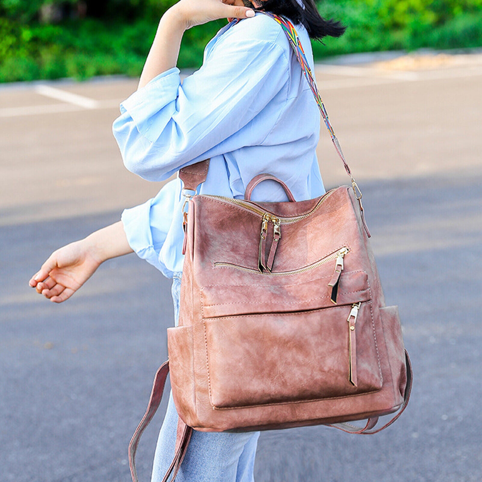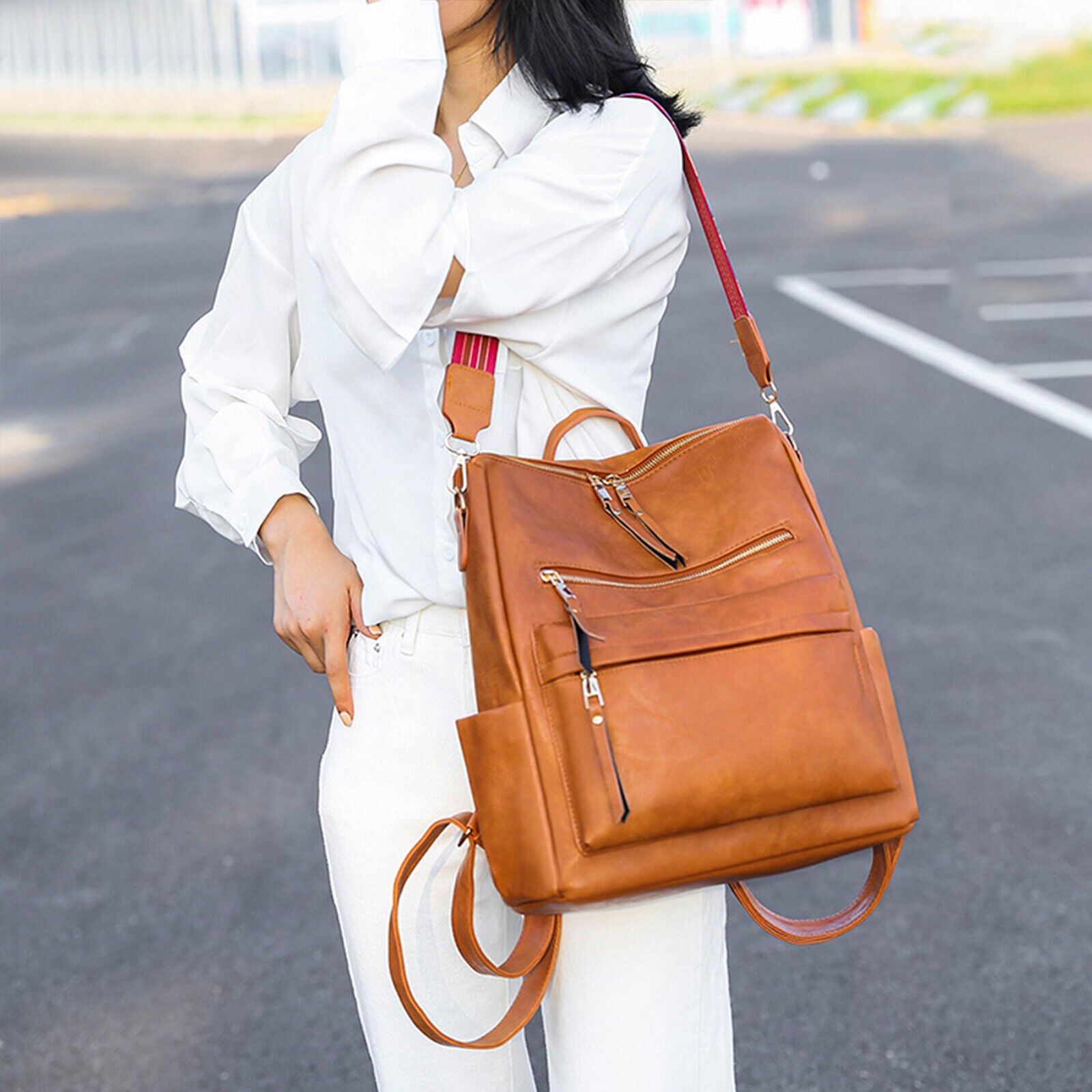 Product DescriptionThis retro backpack is made of high-quality PU material and metal hardware zippers. The waterproof PU material and exquisite workmanship ensure the high quality of the backpack. A removable colorful strap not only makes it fashionable in style but also can convert it into a shoulder bag. It is perfect for carrying daily items or short trips, and also an ideal gift for friends.FeaturesHigh-quality MaterialThe backpack is made of PU material which is waterproof and wear-resistant. The touch of it is medium soft, and it will not be easy to deform. The zipper is smooth and durable and hardware is abrasion-proof and anti-corrosive, and high-quality material provides bright color.Exquisite DetailsThe handle on the top is ergonomically designed with appropriate width and radian which makes it comfortable to pick it up. Double-zipper design is convenient for you to open in two directions. In addition, its detailed streamlined stitching makes it smooth, neat and even.Multifunctional DesignThis 3-in-1 bag combines backpack, shoulder bag, top-handed bag in one. You can use it as a normal fashion backpack with 2 back straps; With a removable shoulder strap, you can convert it to a casual shoulder bag; Also, it can be used as a hand bag with a soft handle.Practical StructureThis bag has a main zipper compartment with 3 small inner pockets. And it also has 3 zipper pockets outside, includes 2 zipper pockets on the front for you to store small items and 1 anti-theft zipper pocket on the back. The 2 slip pocket on both sides can hold water cups, umbrellas, keys etc. It features a large capacity that can hold small daily items, magazines, iPad etc, perfect for your everyday life.Elegant AppearanceIt is a backpack with 2 straps which features classic and elegant look. Our backpack has 1 removable colorful strap, which is fashionable and beautiful. It is not only functional but also a lovely gift for birthdays, anniversaries, etc.Specification◆Type: Backpack◆Material: PU Leather◆Net Weight: 1.76lbs◆Dimensions:11.81x5.90x13.78inch (L x W x H)Package Included1 x BackpackPlease note:Size may be slight inaccuracy due to hand measurementColor may be little different due to monitors. Please take real product as standard