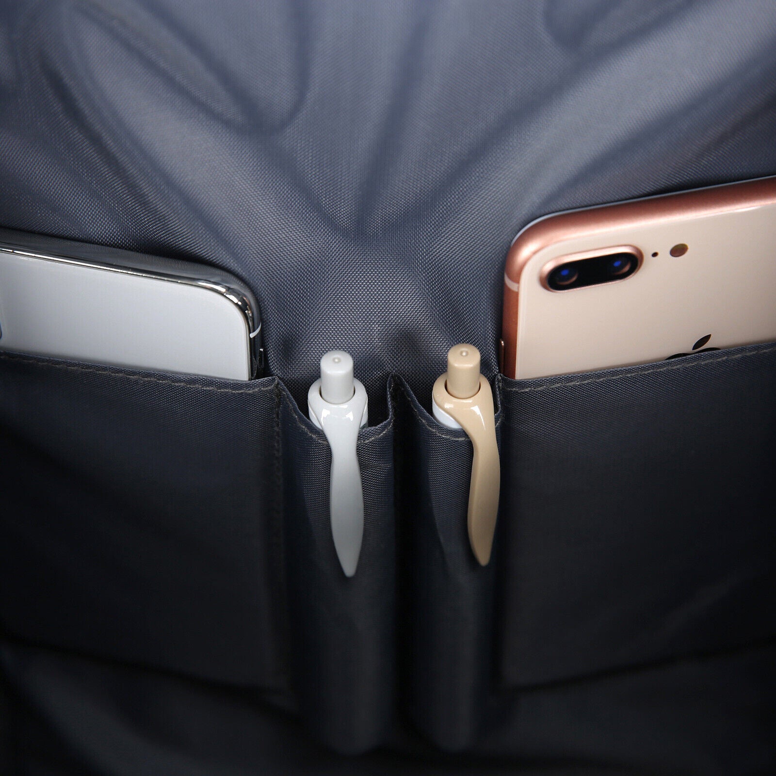 Feature:Water-repellent & Wear-resistantThis backpack is made of high-density Oxford cloth fabric. With coating process, it is wear-resistant and water-repellent.Anti-theftEach bag comes with zipper. It's great to store your 15.6" laptop, mobile phone, document etc for business, travel etcUSB Charging Port and CablePortable USB charge surface design support quick convenient charging for your electronic devices base on your power bank. Additional USB cable is included. It is easily to keep your cell phone full power anywhere!Reflective Strip designThe reflective strip in the front and back keep you safe in night.Breathable MeshThe breathable mesh cloth on the back keeps your back dry continuously and effectively reduce back sweatingLarge CapacitySize: 11.42x6.30x17.32 in (LxW xH ), it can hold a lot of travel goods for about 5-7 days. And them multi separated inner bags keeps all your belongings neat and orderlyWide ApplicationIt's perfect for Business traveling, weekend getaways, school, shopping and other outdoor activities in daily life.Specification:Material: Oxford ClothStyle: Leisure, Business, FashionColor: Blue, Gray,BlackOpen Way: ZipperSize: 11.42x6.30x17.32 in (LxW xH ) Internal Structure: 15.6" Laptop Bag, Mobile Phone Bags, Document Bags,ID bagPencil Bag Package Included:1 X USB Charge Backpack1 x USB Cable Note: There is no mobile power comes with the backpack inside.If you want to use External USB Charge Function, you have to do as follows:1. Buy a mobile power first2. Connect your mobile power with the USB interface inside the backpack.3. Connect your phone with the USB interface outside the backpack.4. Charging begins.5. Please allow 0.39-1.18 inch differs due to manual measurement.6. The color may be a little different from that of real item due to the different display and different light.