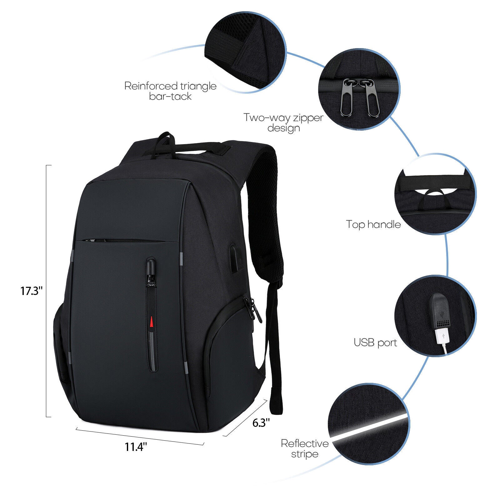 Waterproof Laptop Backpack 17" Travel Rucksack School Bag with USB Charging Port