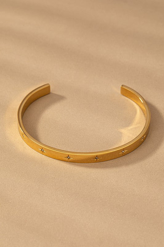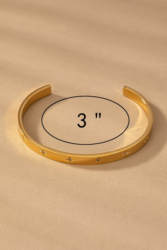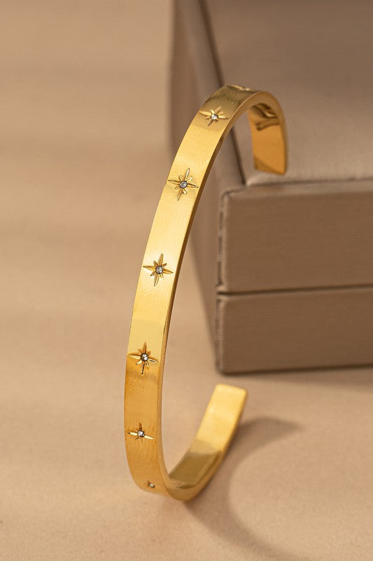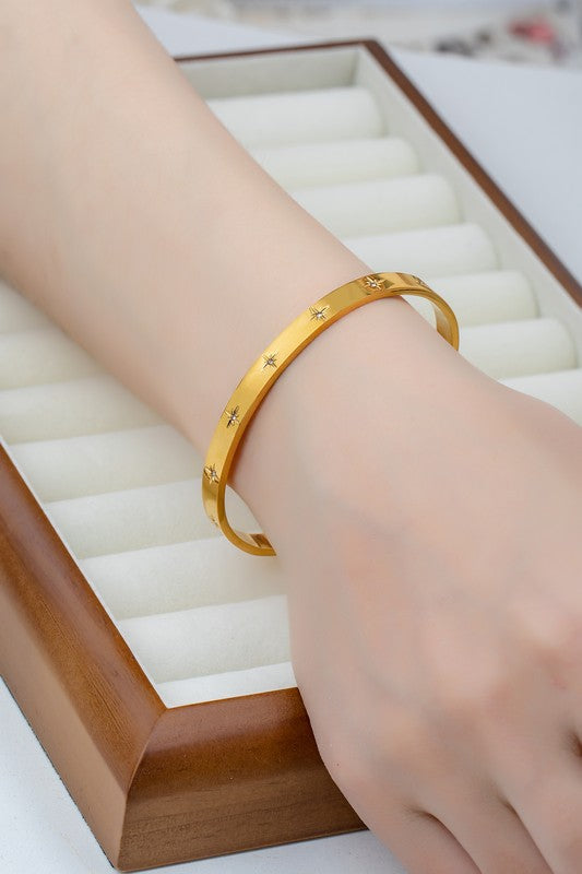 Waterproof stainless steel engraved star hinge bangle with AAA+ CZ stones