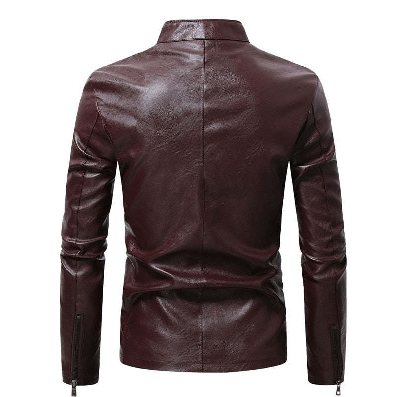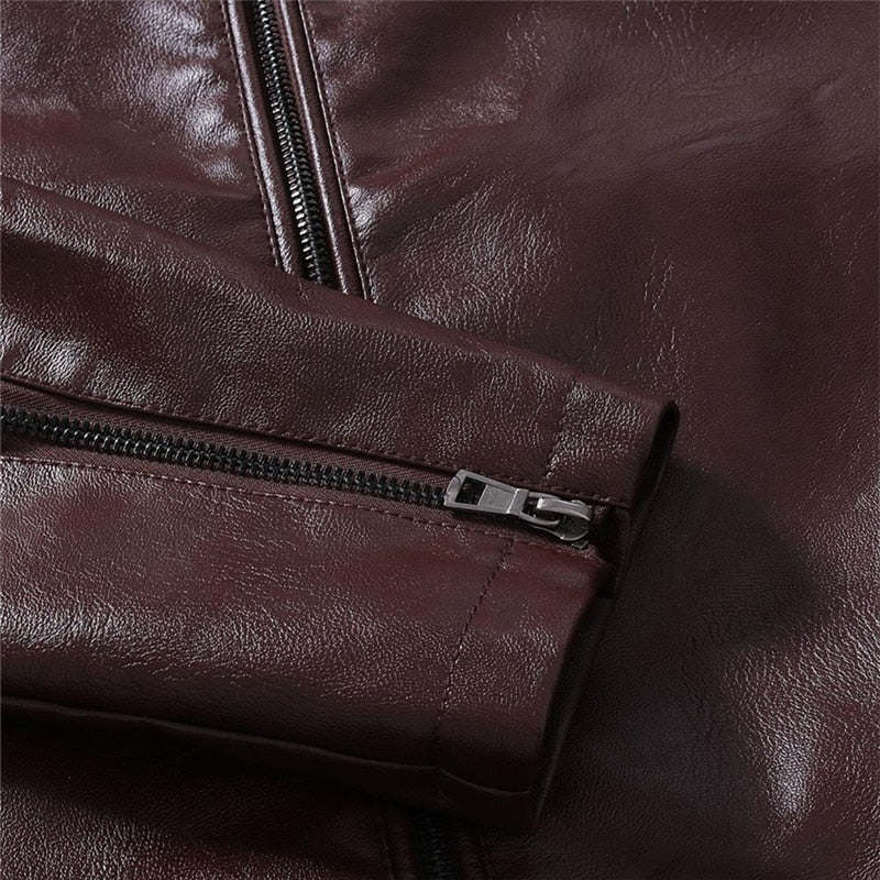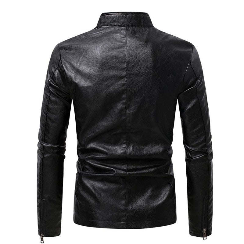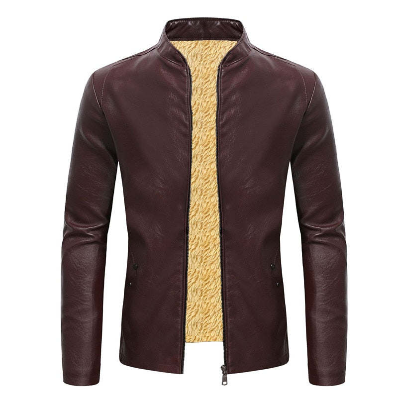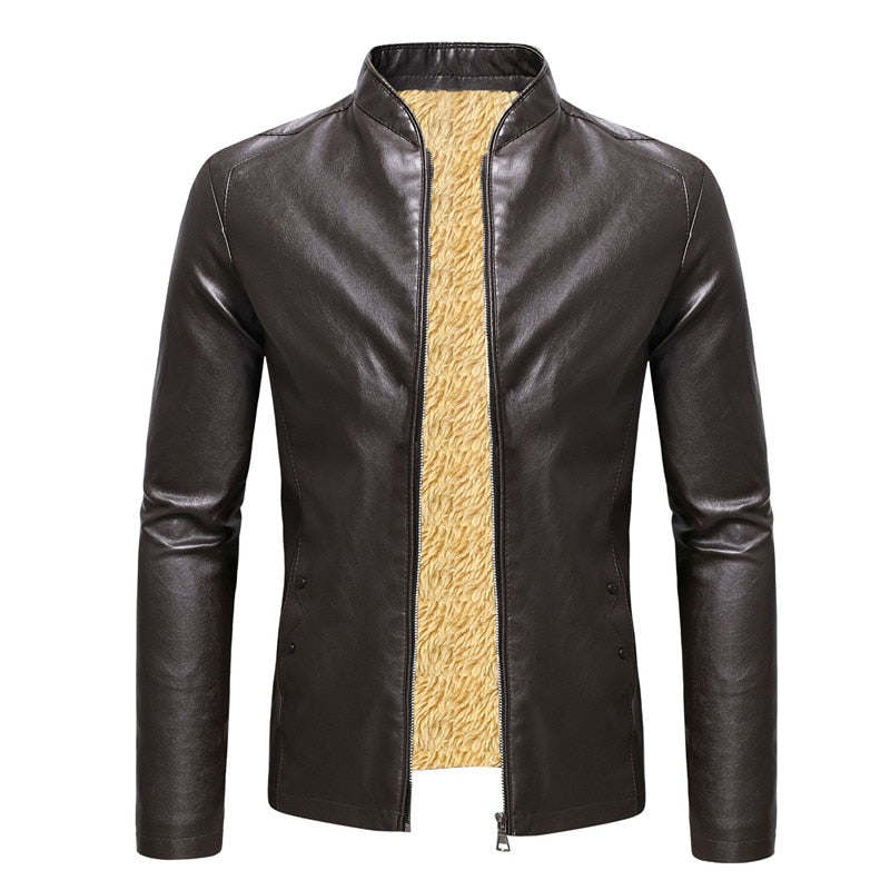 Winter Fleece Leather Jacket Men PU Faux Warm Suede Fashion Stand Collar Casual Solid Motorcycle Leather Jackets Coat Men