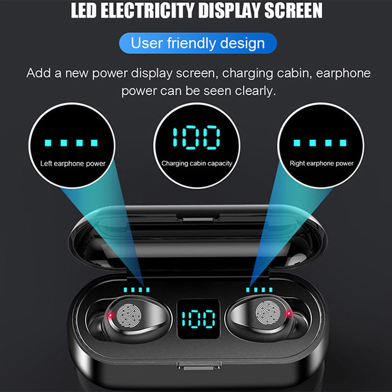 Check battery consumption display anytime. The wireless earbuds charging case presents its battery from 1%-100%. There are separate left and right headphone power consumption indicator. You can see the battery levelclearly, no more worry about out of battery.Perfectly