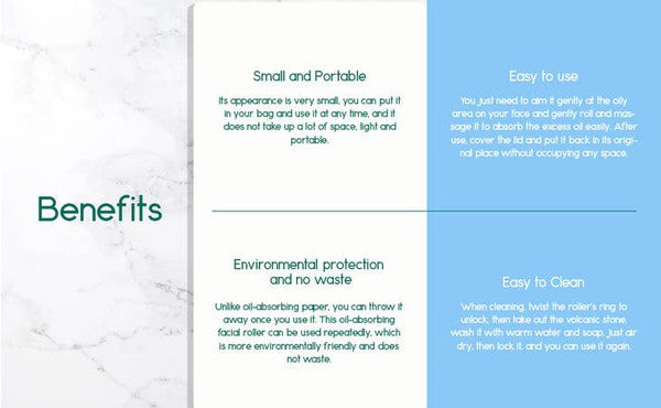 * Reusable. This oil-absorbing facial roller is made of real volcanic stone, which can instantly remove excess facial oil, restore clean matte skin, and keep our makeup clean at all times and can be reused