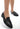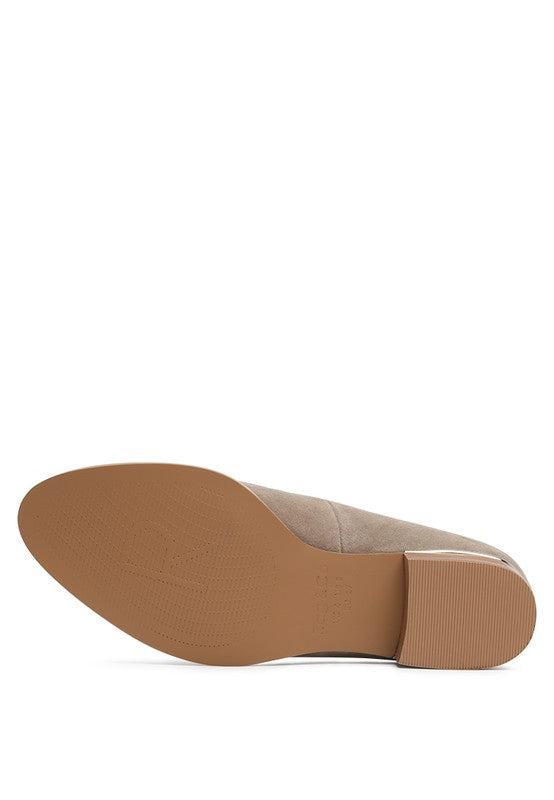 In soft Genuine Leather, this formal piece has metallic arc detail on the heel.
