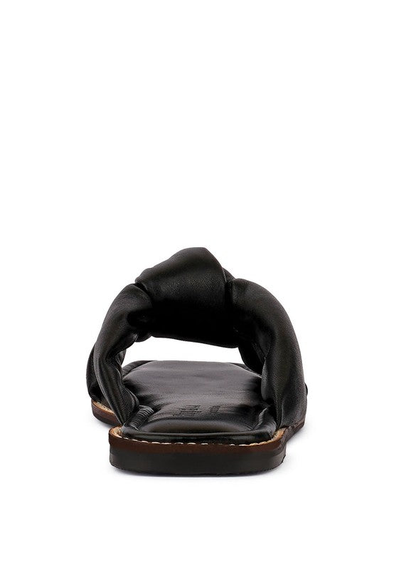 High Quality Leather in puffed straps which overwhelmingly styles your feet. This leather flat looks beautiful and has light cushioning added. A walking experience like no other for the woman, who loves a stroll or two in beautiful summer evenings!