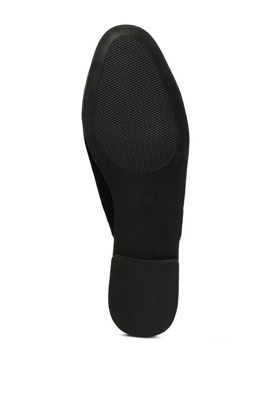 Velvet Buckled Flat Mules