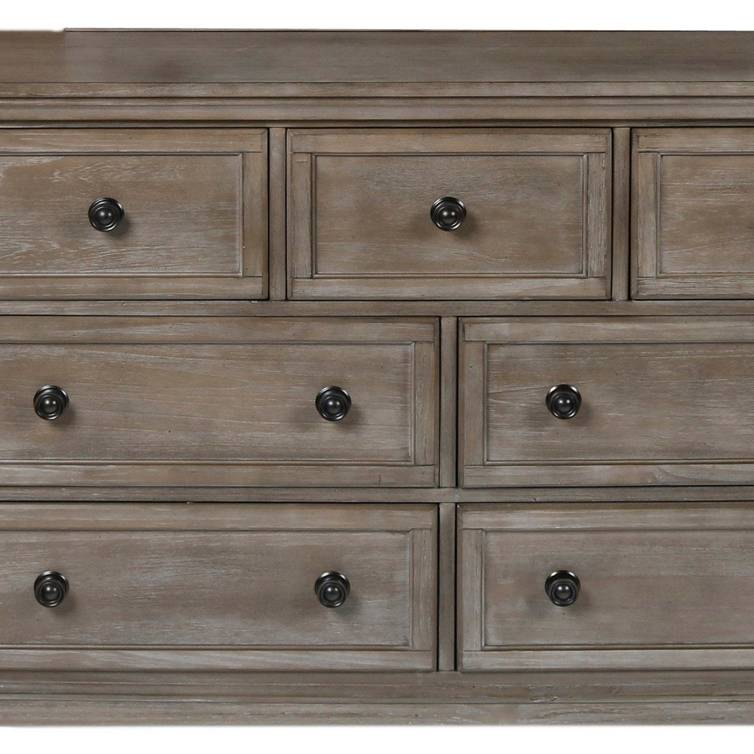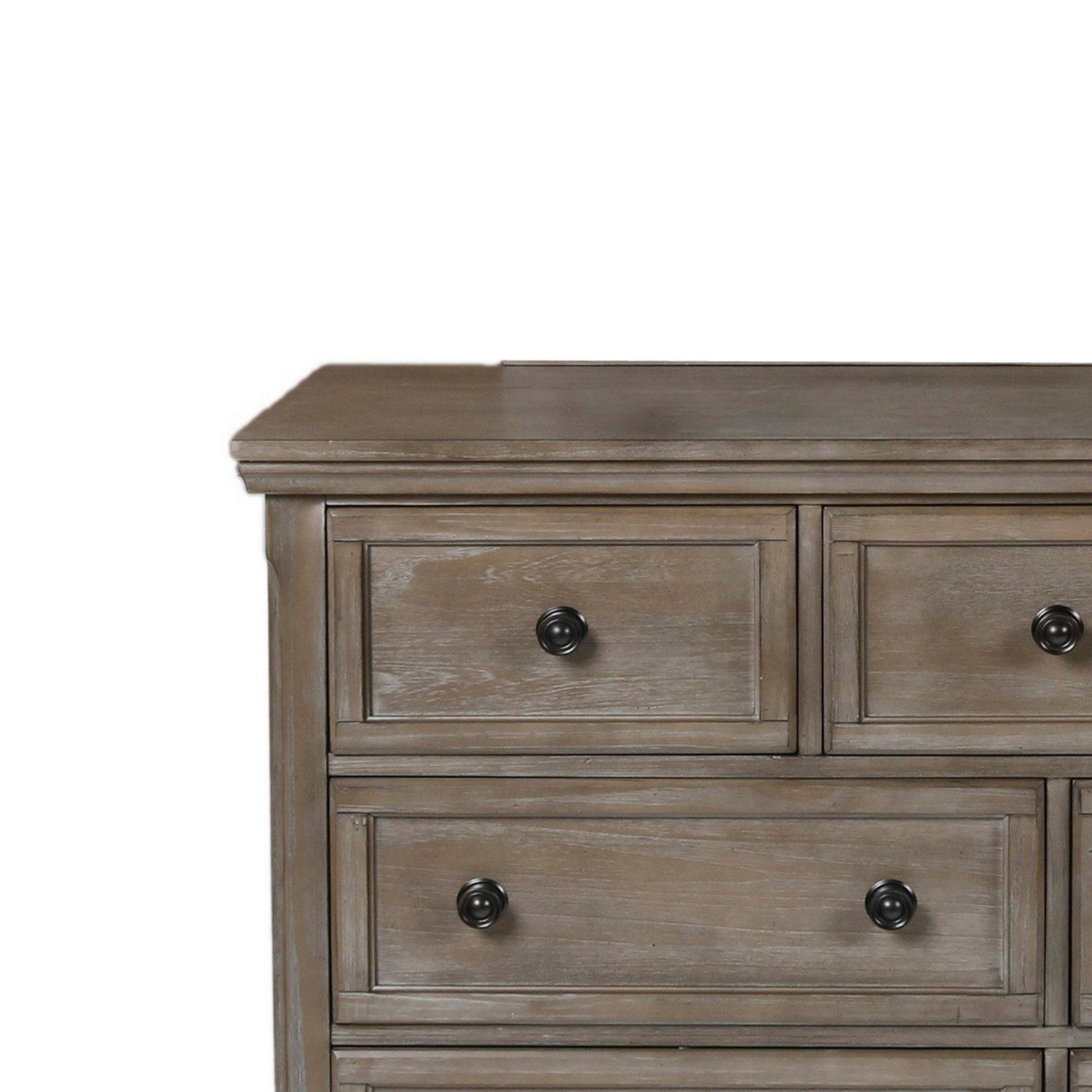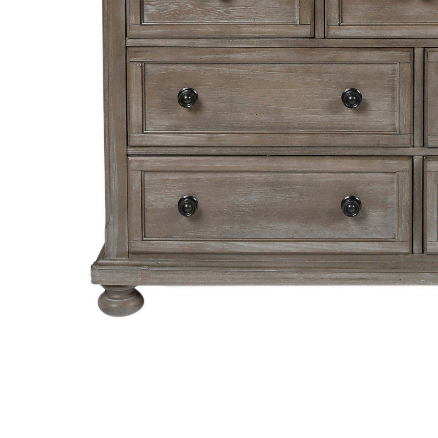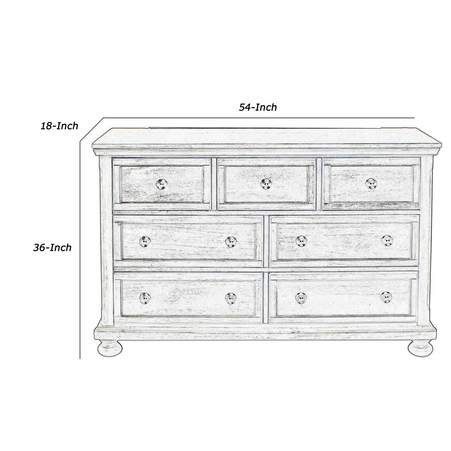 7 Drawer Wooden Dresser with Metal Pulls and Bun Feet, Distressed Brown