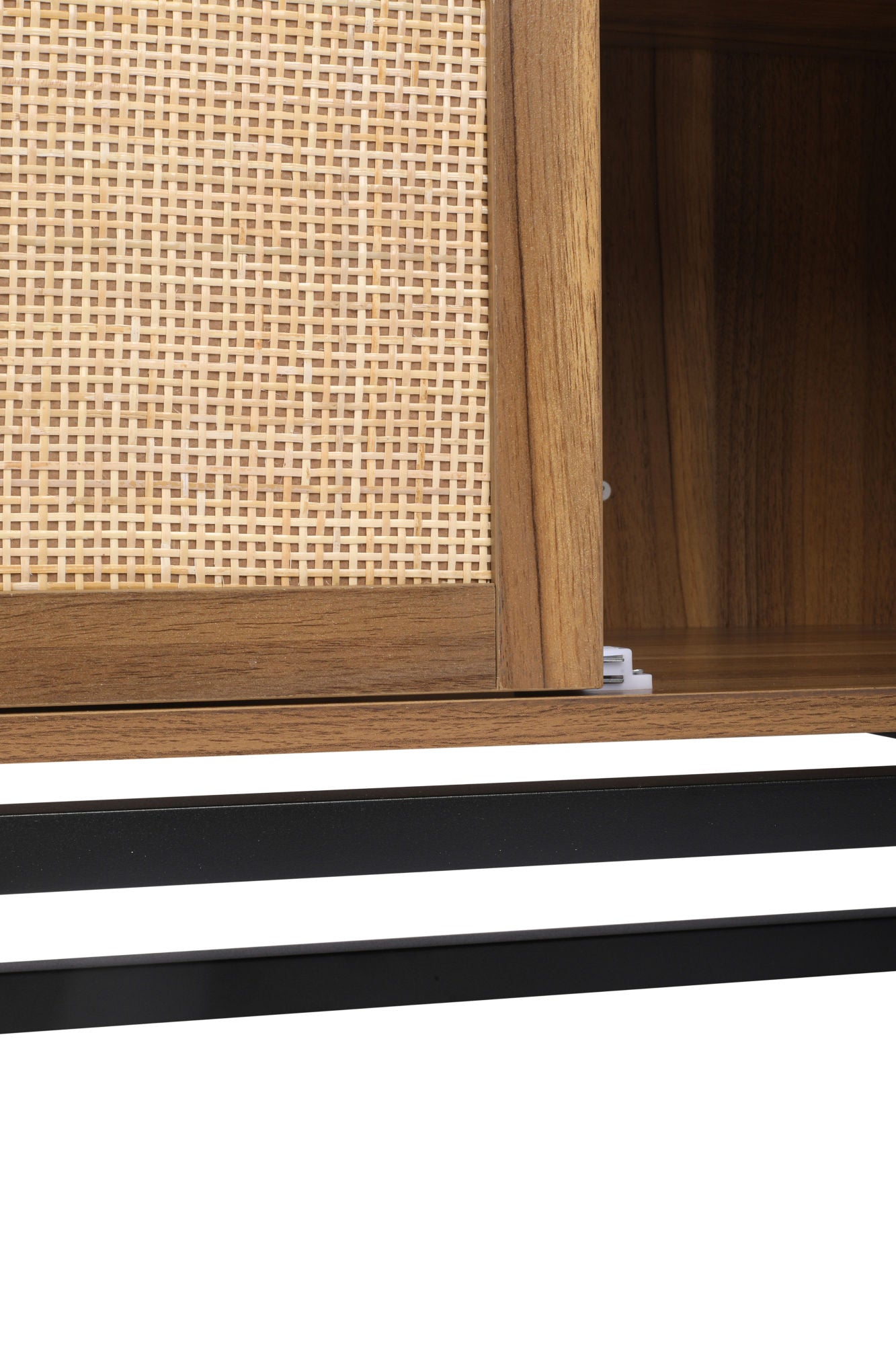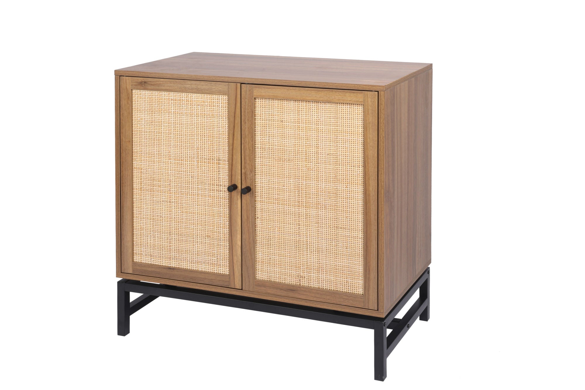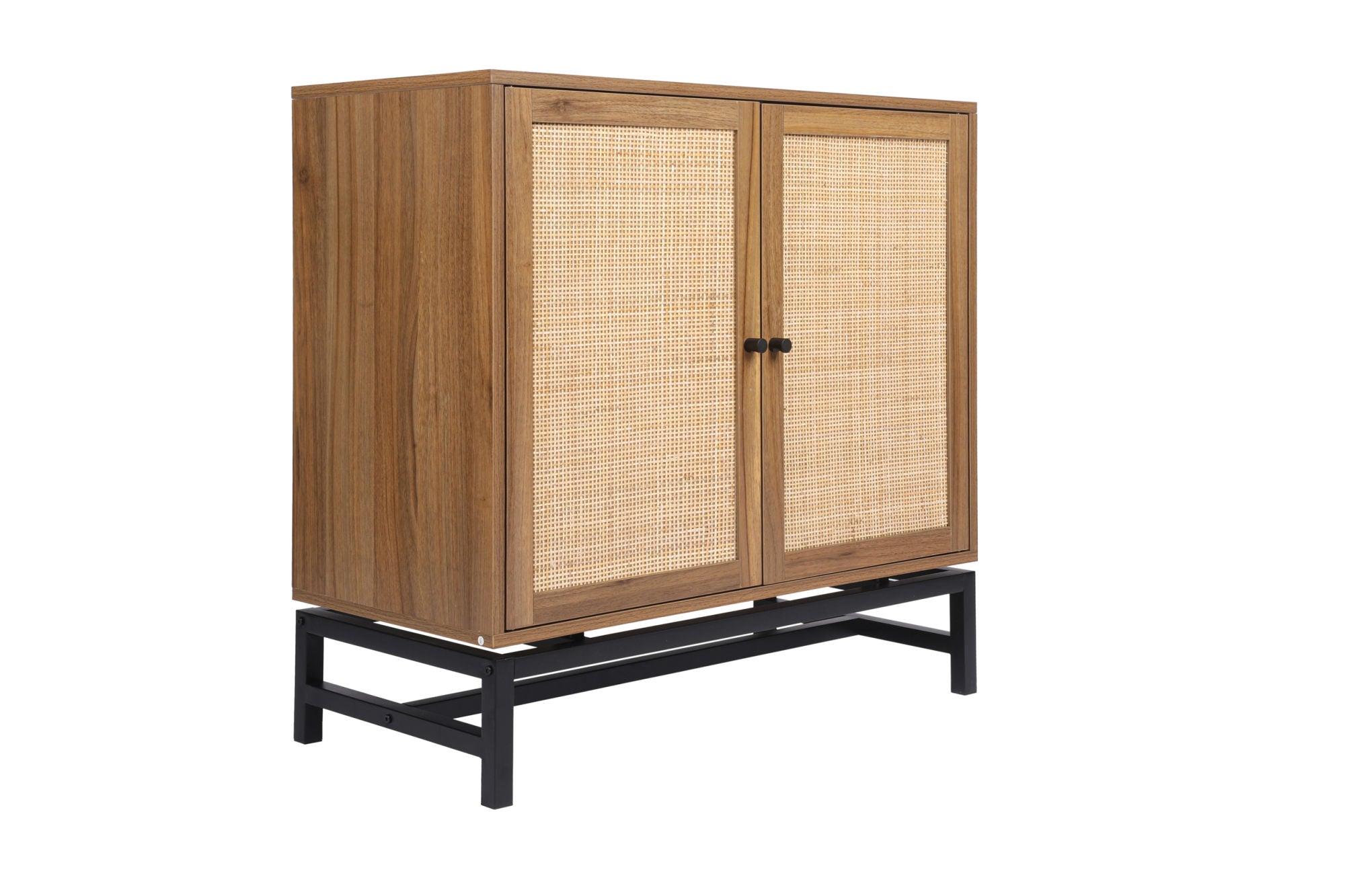 Natural Rattan, 2 Door Cabinet, with 1 Adjustable Inner Shelves, Rattan, Accent Storage Cabinet