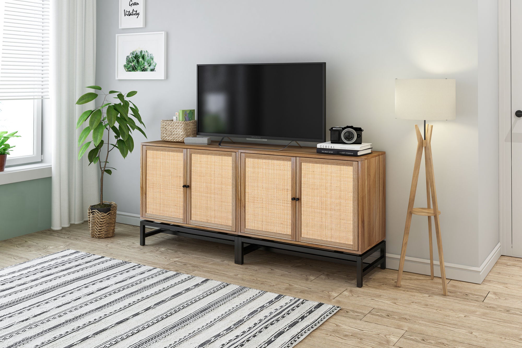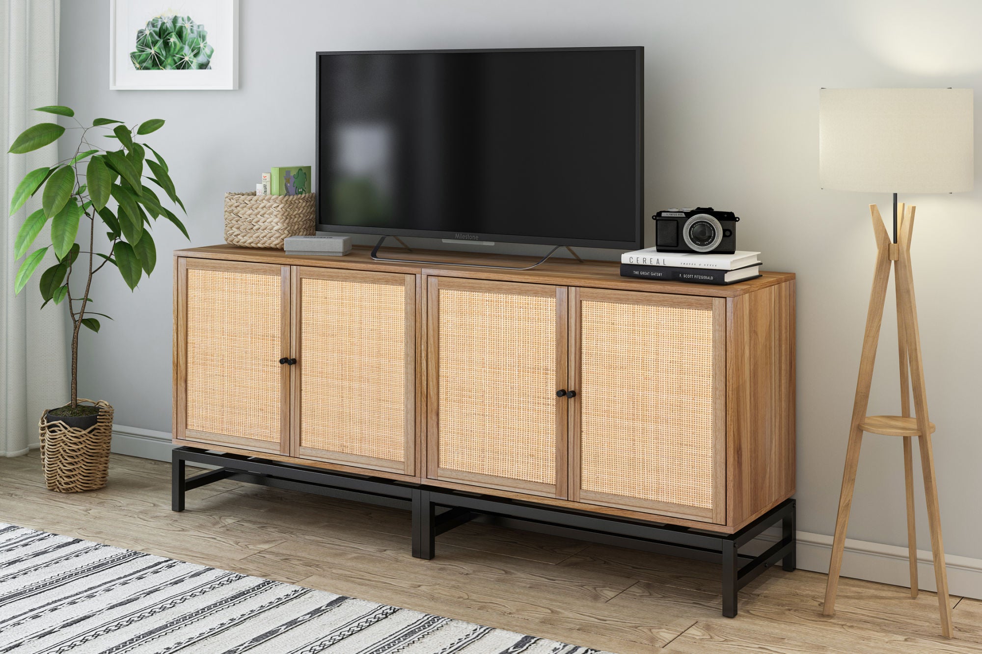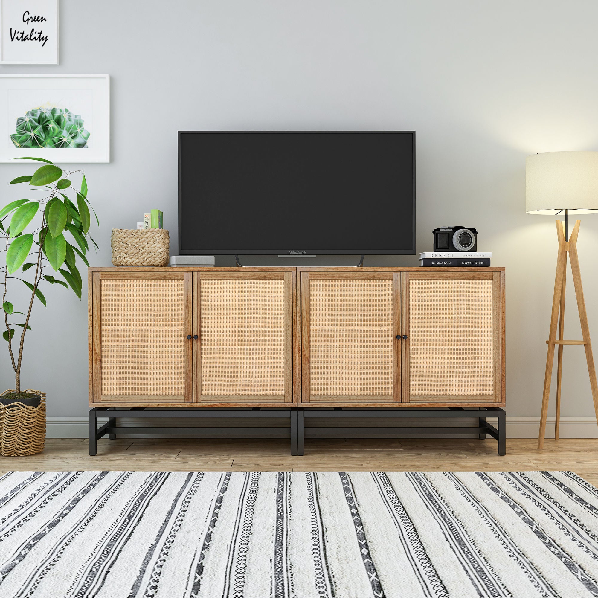 Natural Rattan, 2 Door Cabinet, with 1 Adjustable Inner Shelves, Rattan, Accent Storage Cabinet