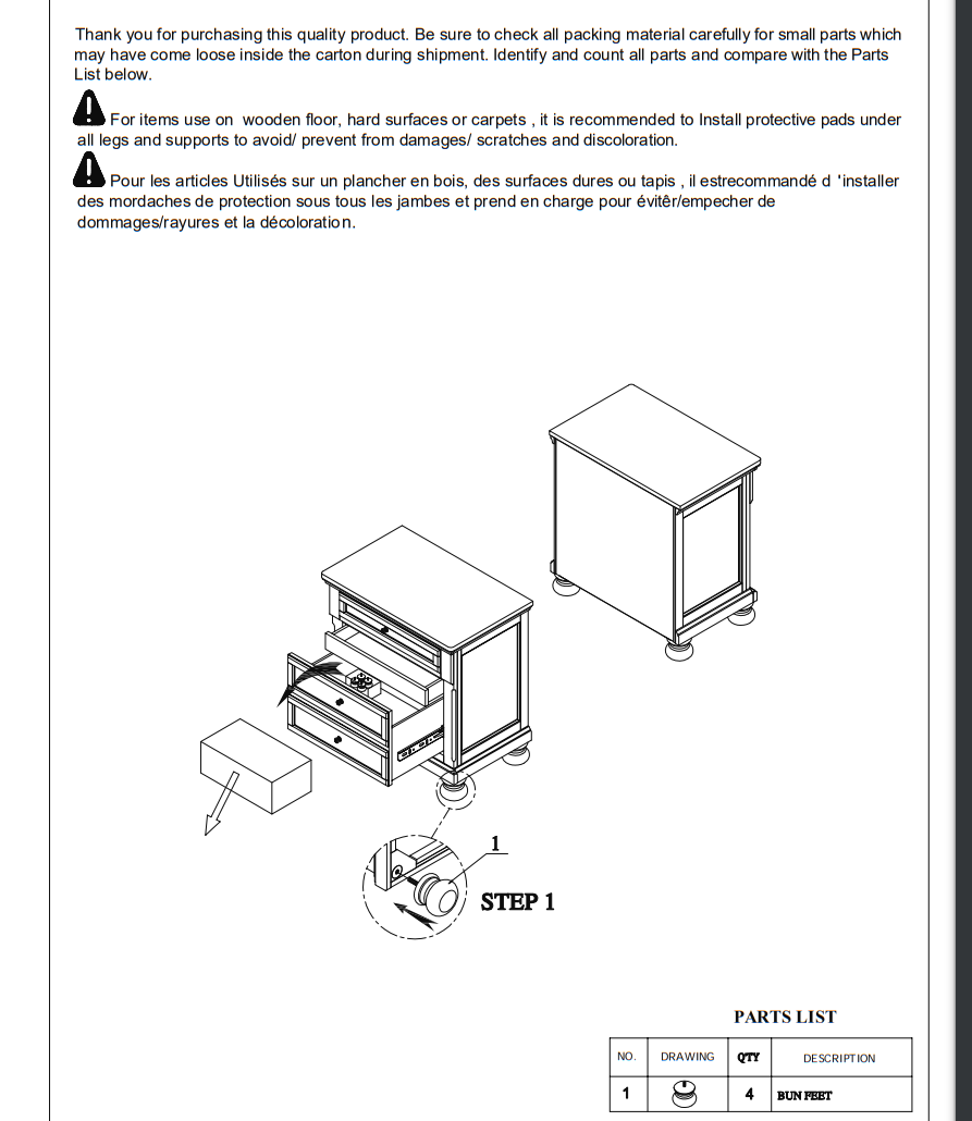 Traditional accents, such as turned bun feet support the nightstand, and a gray, lightly wire-brushed finish on birch veneer and selected hardwoods, blends with framing and lines that complement your personal style. Hidden drawer storage in the nightstand is a clever way to hide your valuables.