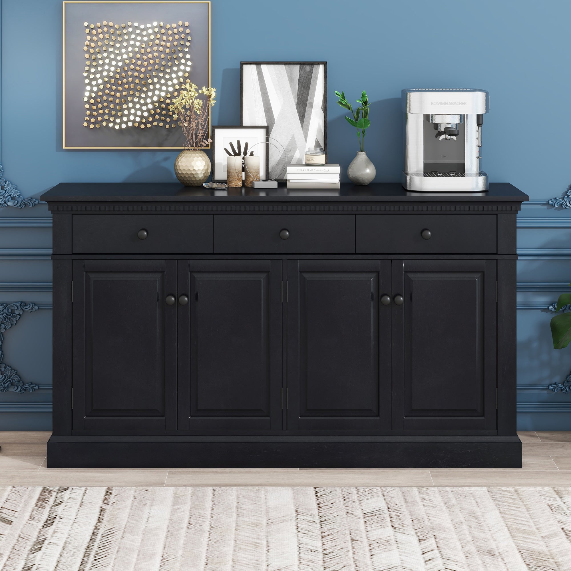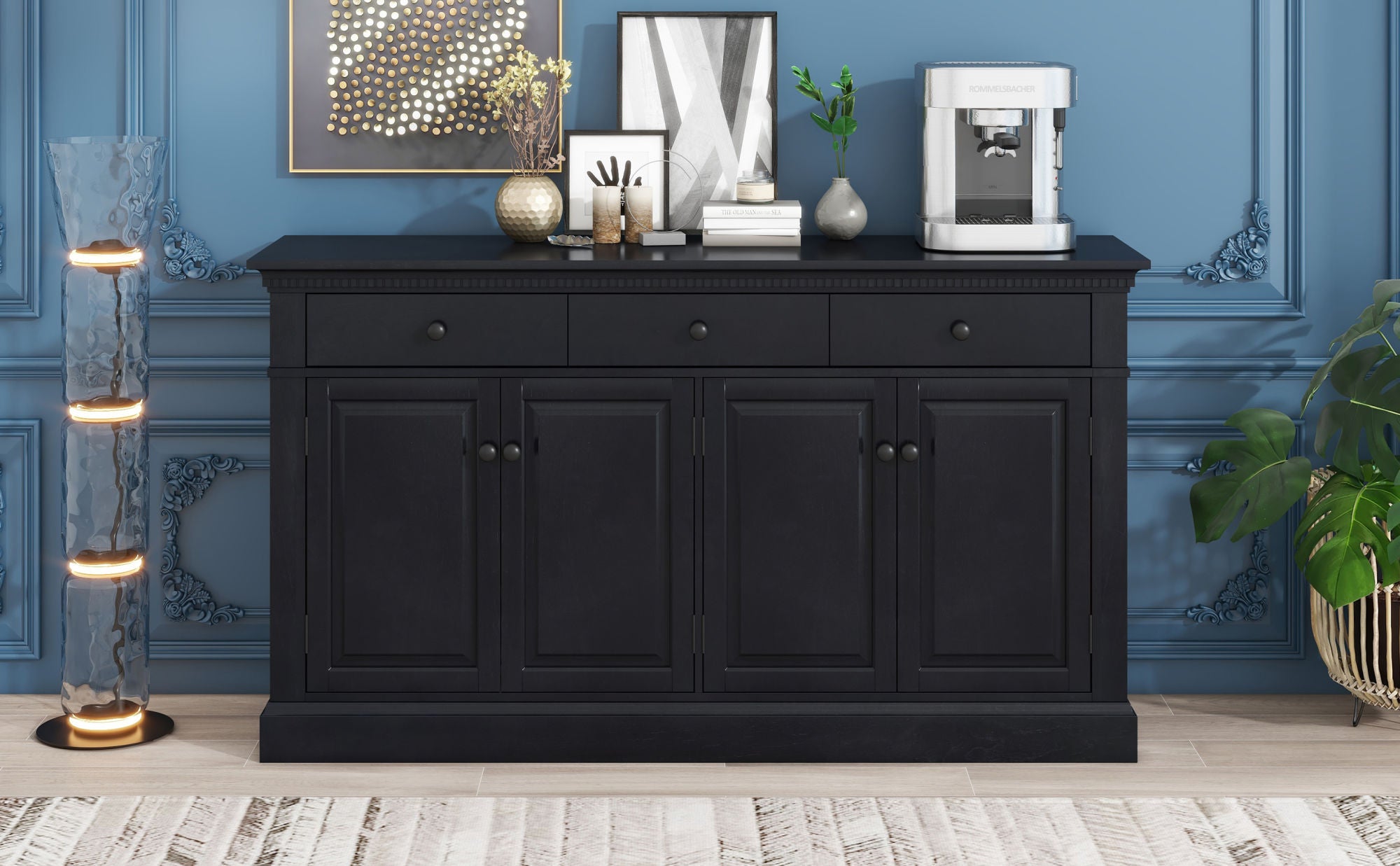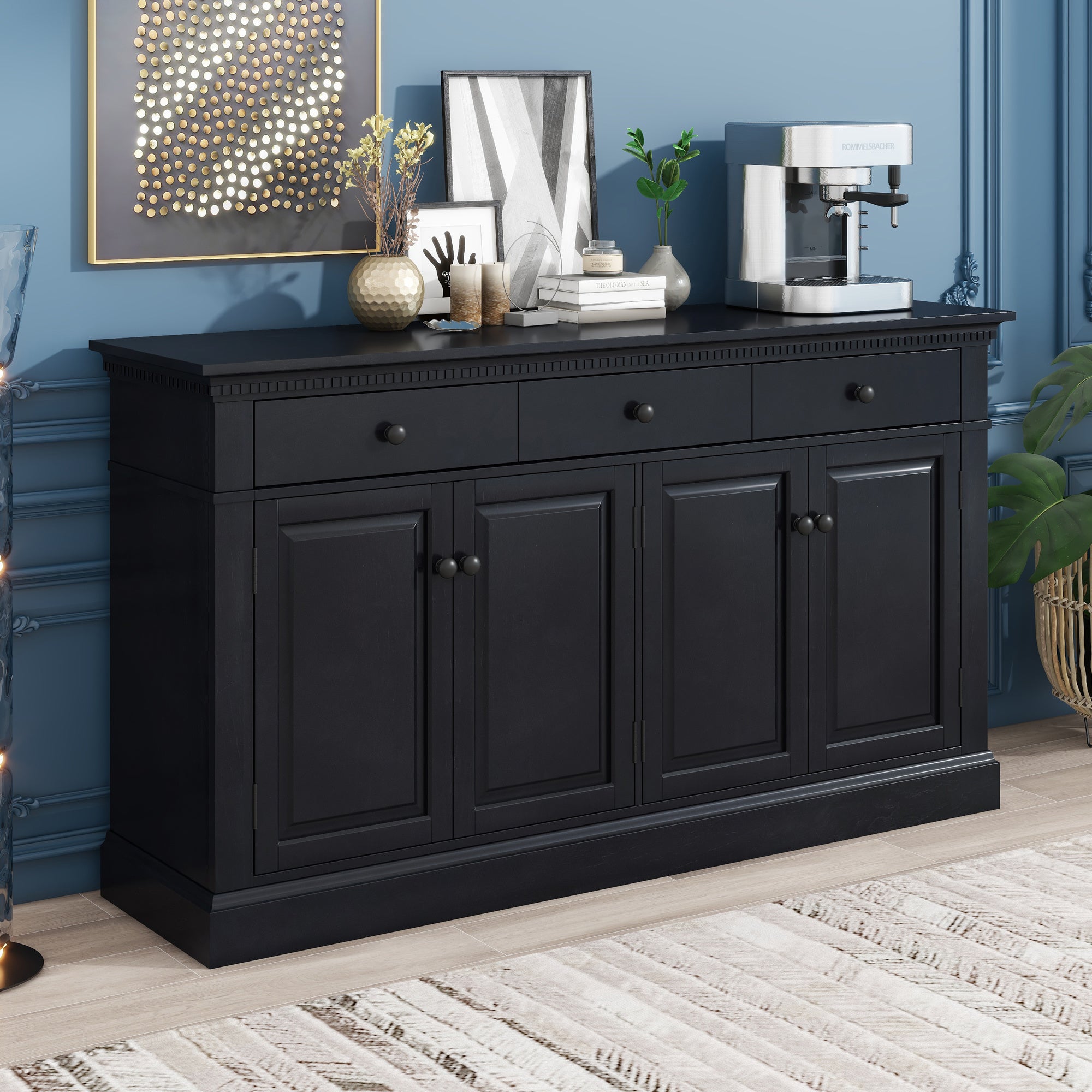 The sideboard exuding a robust American retro style offers ample storage space, making it aesthetically pleasing and practical. It is available in two colors: black and taupe. Black, a timelessly classic color, never goes out of style, and most consumers highly favor its sophisticated and elegant characteristics. Taupe, which is greatly in line with the current trend, is also favored by increasing consumers.