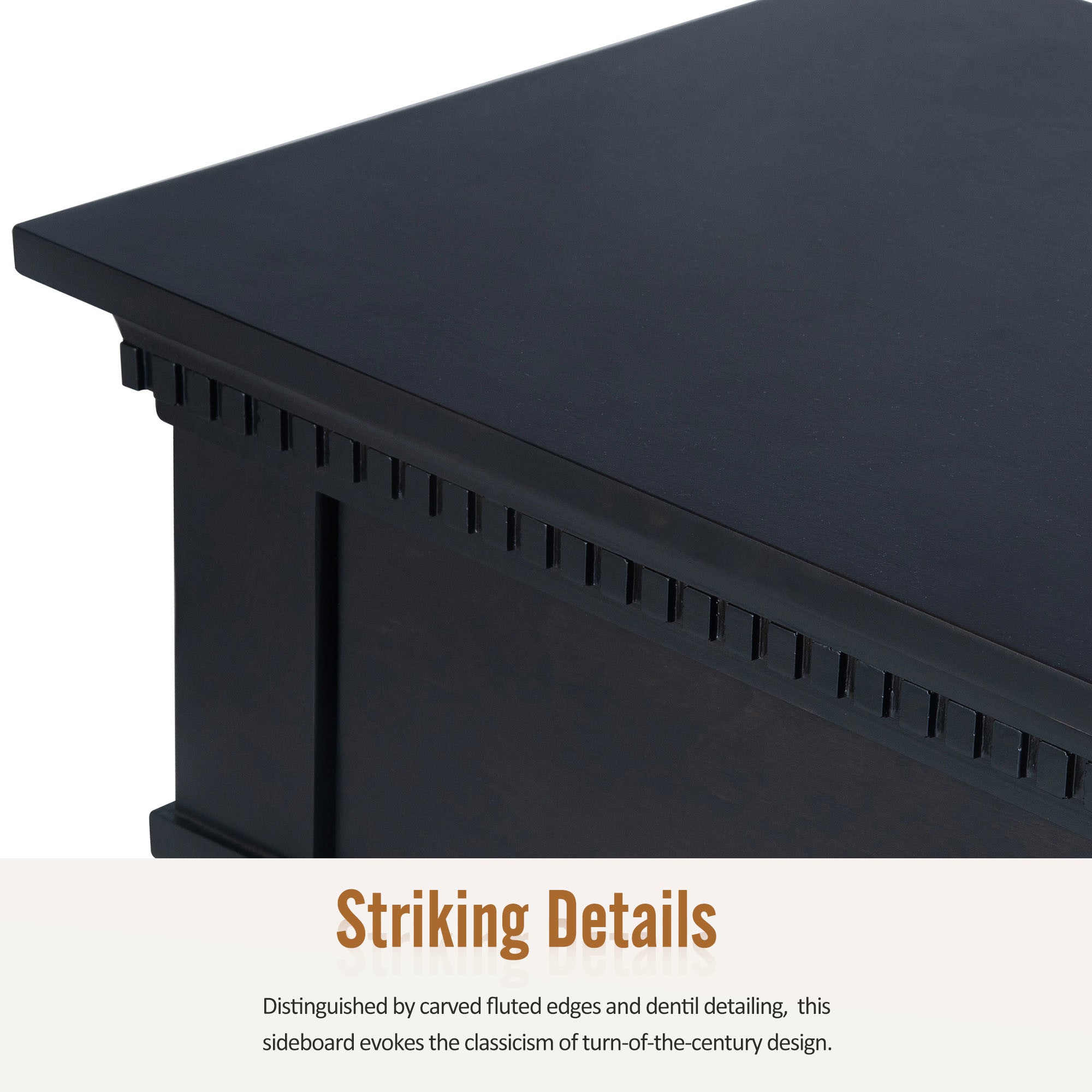 Striking Details: The design of this sideboard is imbued with a rich American retro aesthetic. Evoking the classicism of turn-of-the-century design, our sideboard is grand in both beauty and practicality. Distinguished by carved fluted edges and dentil detailing, our timeless sideboard is full of vintage flair. The intensive multi-step finishing process results in a smooth appearance that reveals the natural character of the birch veneer.