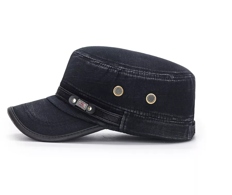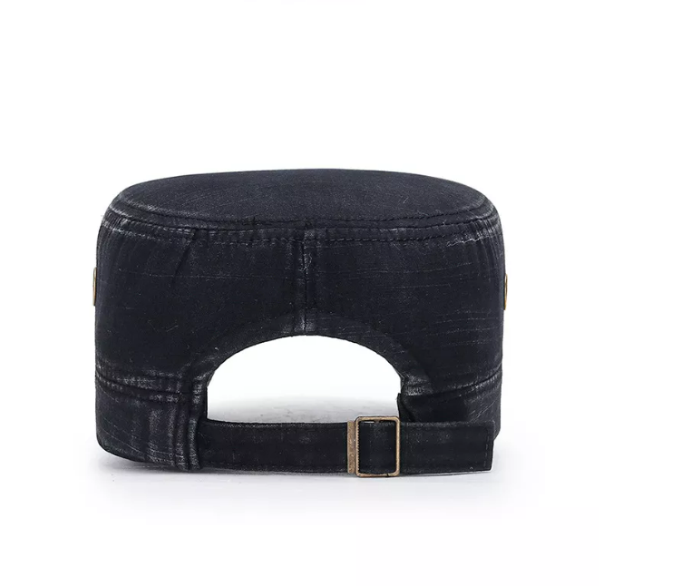FS Fashion Flat-top Leather-trimmed Vintage Cotton Hat Adjustable