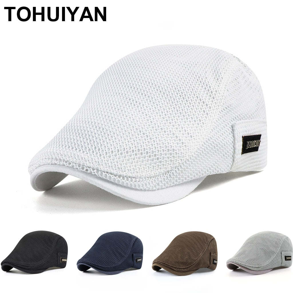 Summer Mens Hats Breathable Mesh Newsboy Caps Outdoor Gorro Hombre Boina Golf Hat Fashion Solid Flat Cap For Women