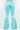 Add a sparkly twist to your denim collection with our Metallic Bell Bottom Jean in Turquoise! Functional pockets, a button and zipper closure, and a frayed hem add charm to this American-made garment. The unique garment-dye and metallic foil finish make it truly one-of-a-kind.