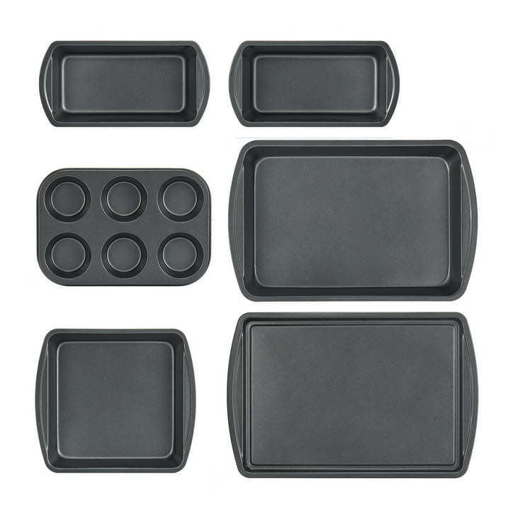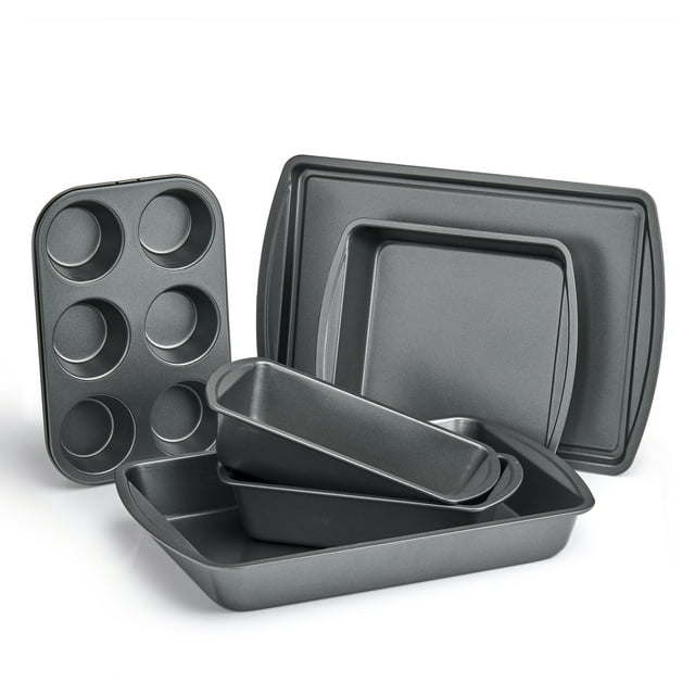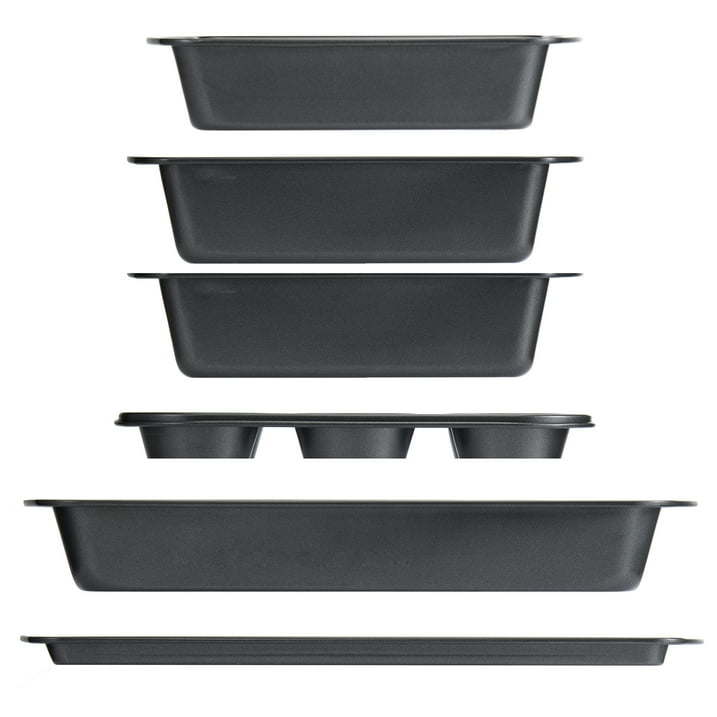 6 Piece Non-Stick Bakeware Sets, Easy for Release and Clean up, Carbon Steel, Gray