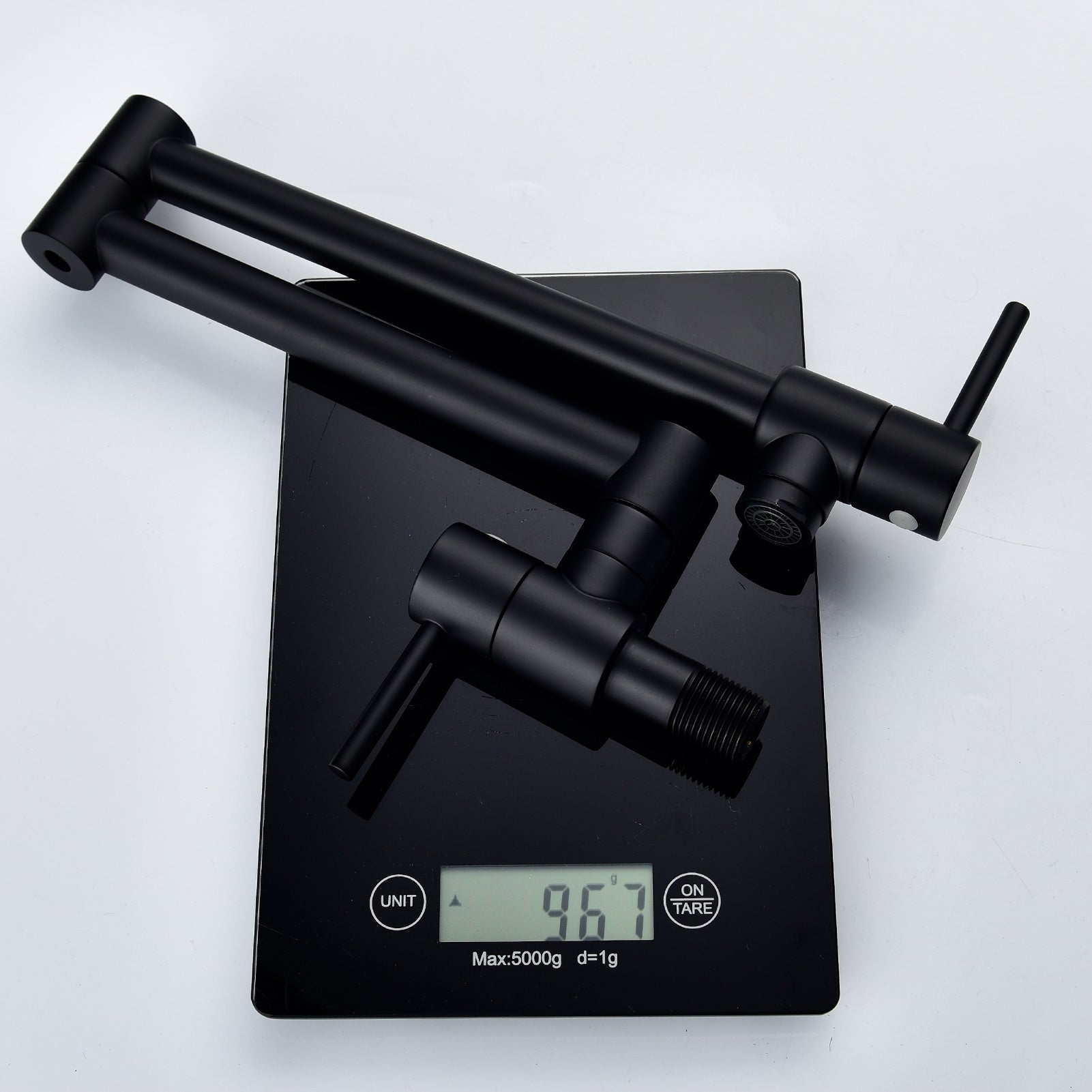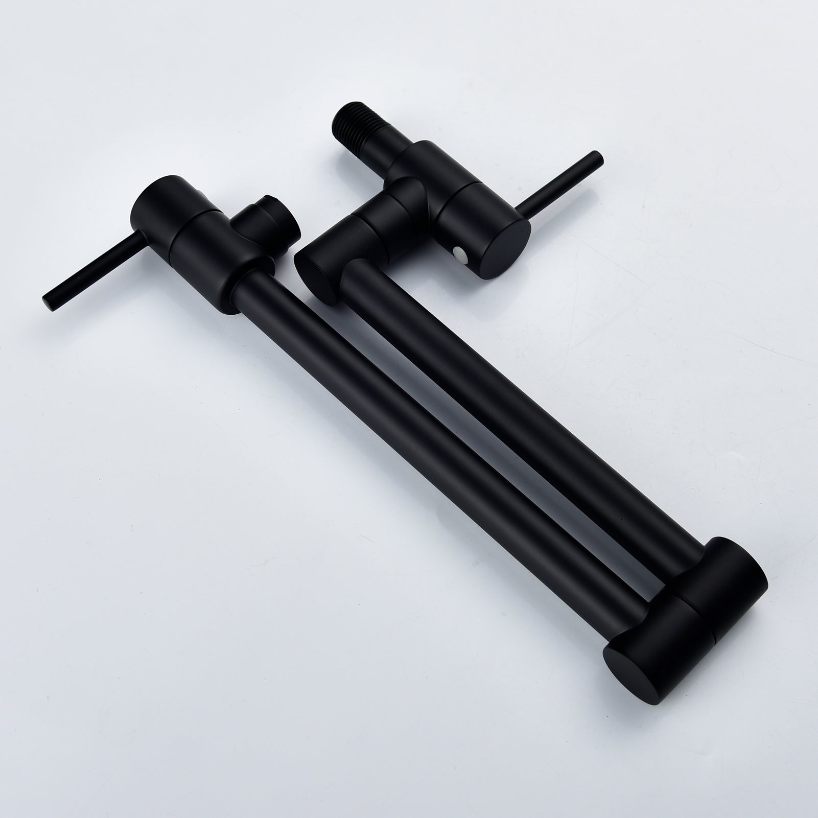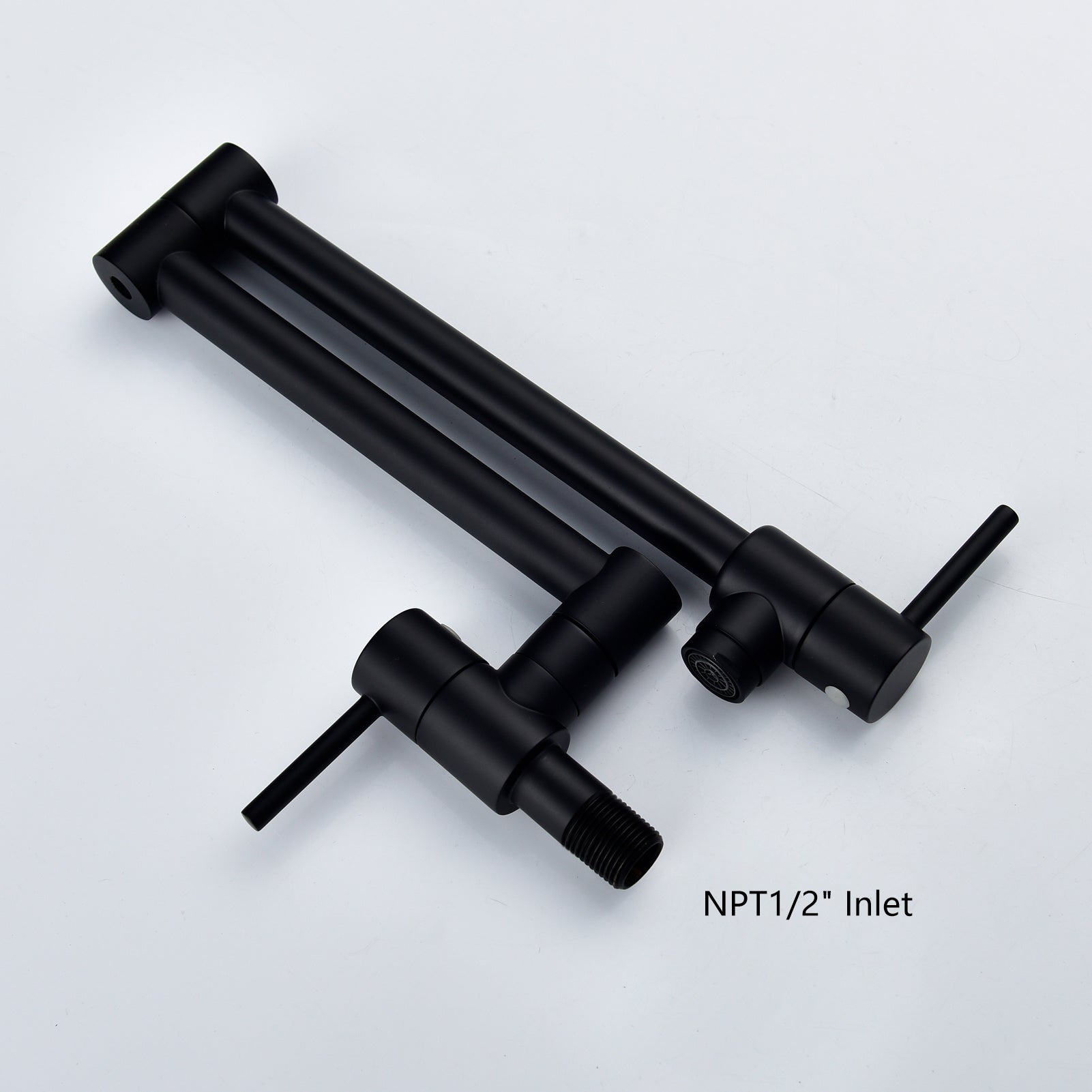 Brass Folding Faucet 1/2'NPT Wall Mount Kitchen Faucet Two Handles Cold Water Tap Black