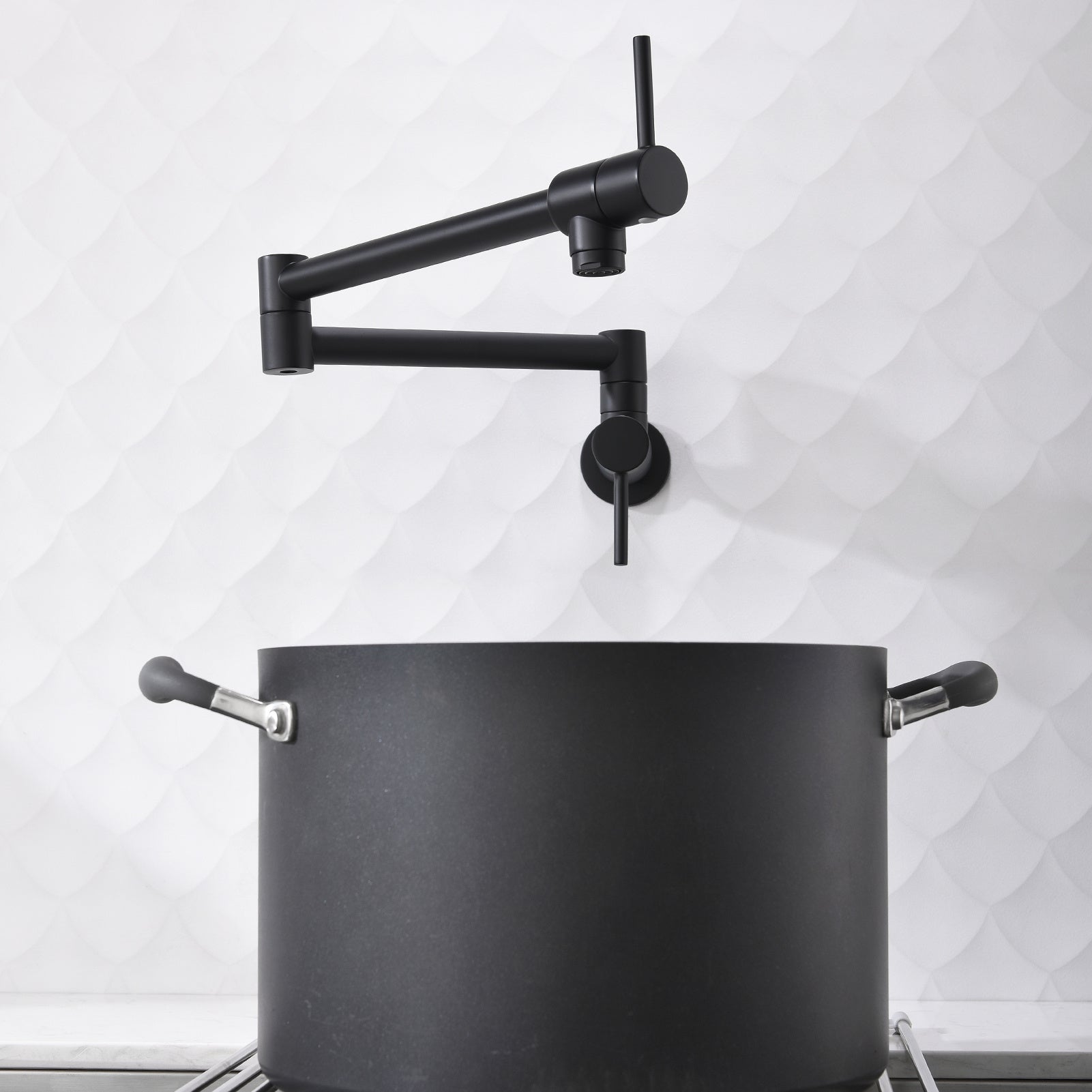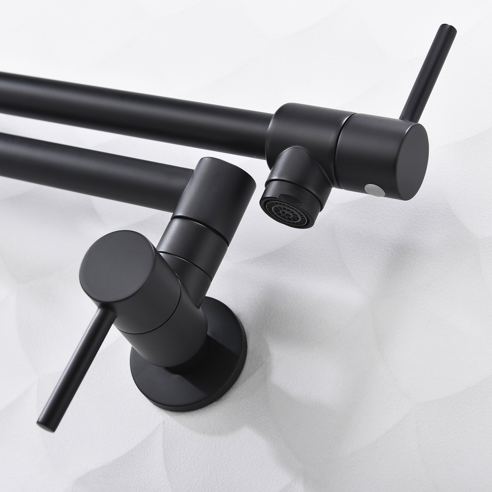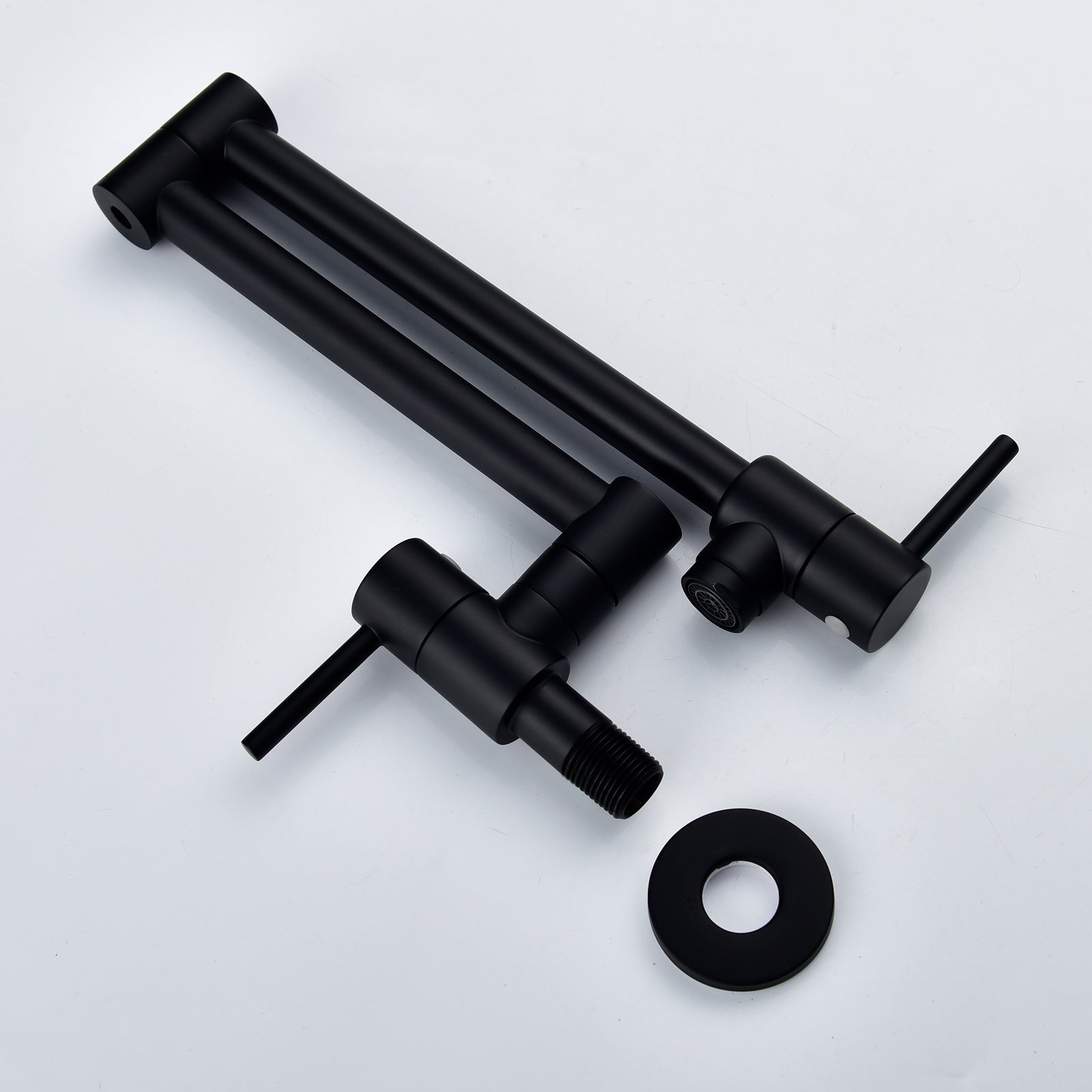 Brass Folding Faucet 1/2'NPT Wall Mount Kitchen Faucet Two Handles Cold Water Tap Black