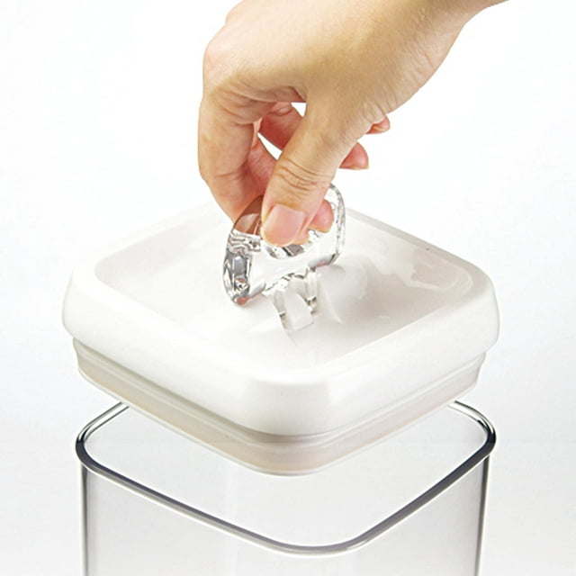 Keep your dry goods fresh with this Food Storage Containers. It is a handy item to have in your kitchen or pantry. These food storage containers are ideal for storing dry foods, such as pasta, dried beans, and candies. It's made without Bisphenol A (BPA) to ensure the safety of your food. A clear storage container makes it easy to identify the stored contents at a glance without having to label each canister. It features an easy-to-open flip buckle lid with food grade safe seal and is made of durable construction. This 4 pack set includes 1 of 6.5-cup small square food storage container, 1 of 10.1-cup medium square food storage container, 1 of 16-cup large square food storage container, 1 of 19.4 cup square tall food storage container and 4 lids. Always wash before first use and remove seal from lid before wash. Allow all components to dry thoroughly before next use. Container and lid are dishwasher safe, the silicone seal is hand wash. Not Microwave safe. Do not carry Flip-Tite Container by the lid.