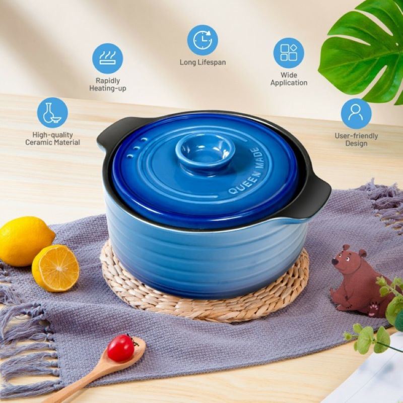 Multi-purpose Use and Easy Clean-up: Perfect for casseroles; chicken; soup; porridge; and more; the ceramic pot can be used for stewing and braising for different needs. After cooking; clean-up is a breeze. Thanks to the ceramic material; food won't stick to the pot so that it can be easily cleaned with a damp cloth.
