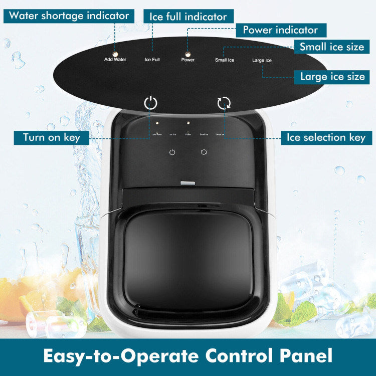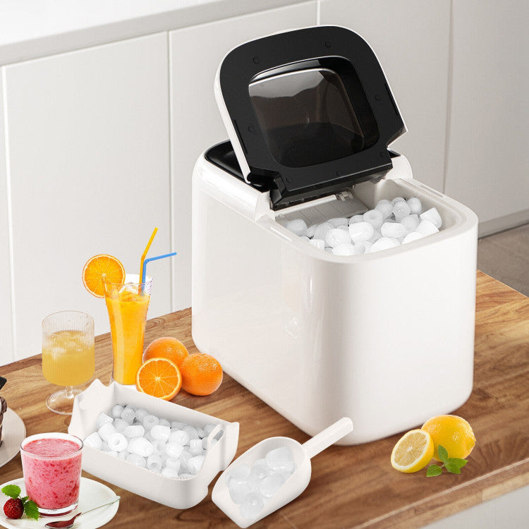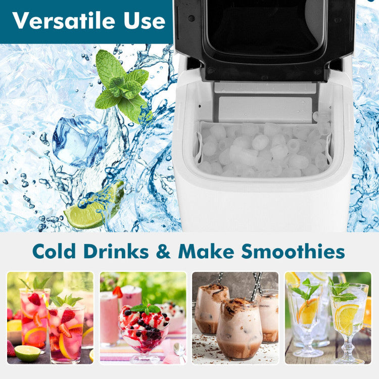 This compact ice maker weighs only 24.5 lbs and measure in size, allowing you to carry it to any place with ease. Apart from using it at home, it's also very suitable for office, dormitory, RV, party, etc.