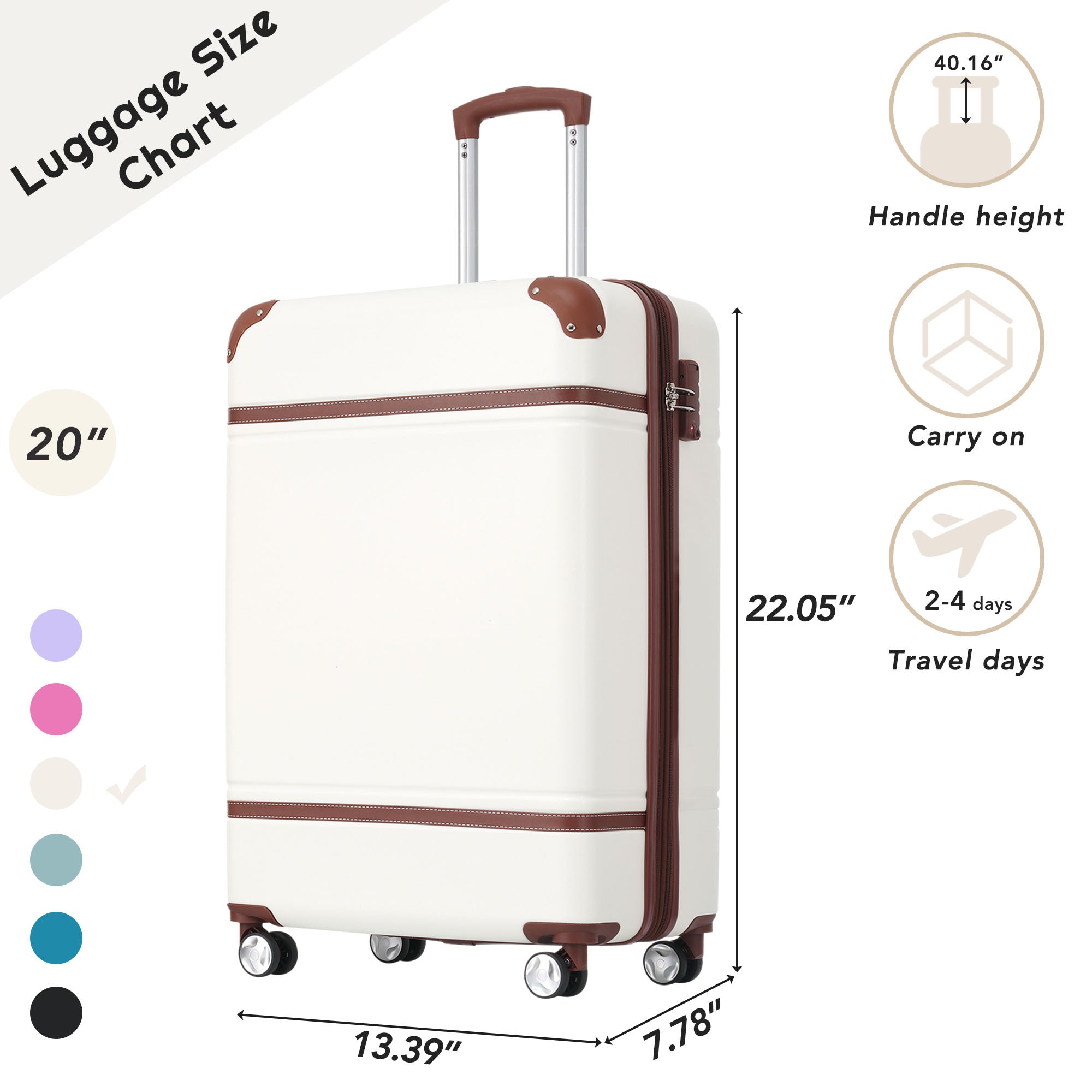 20 IN Luggage 1 Piece with TSA lock, Lightweight Suitcase Spinner Wheels, Carry on Vintage Luggage, White