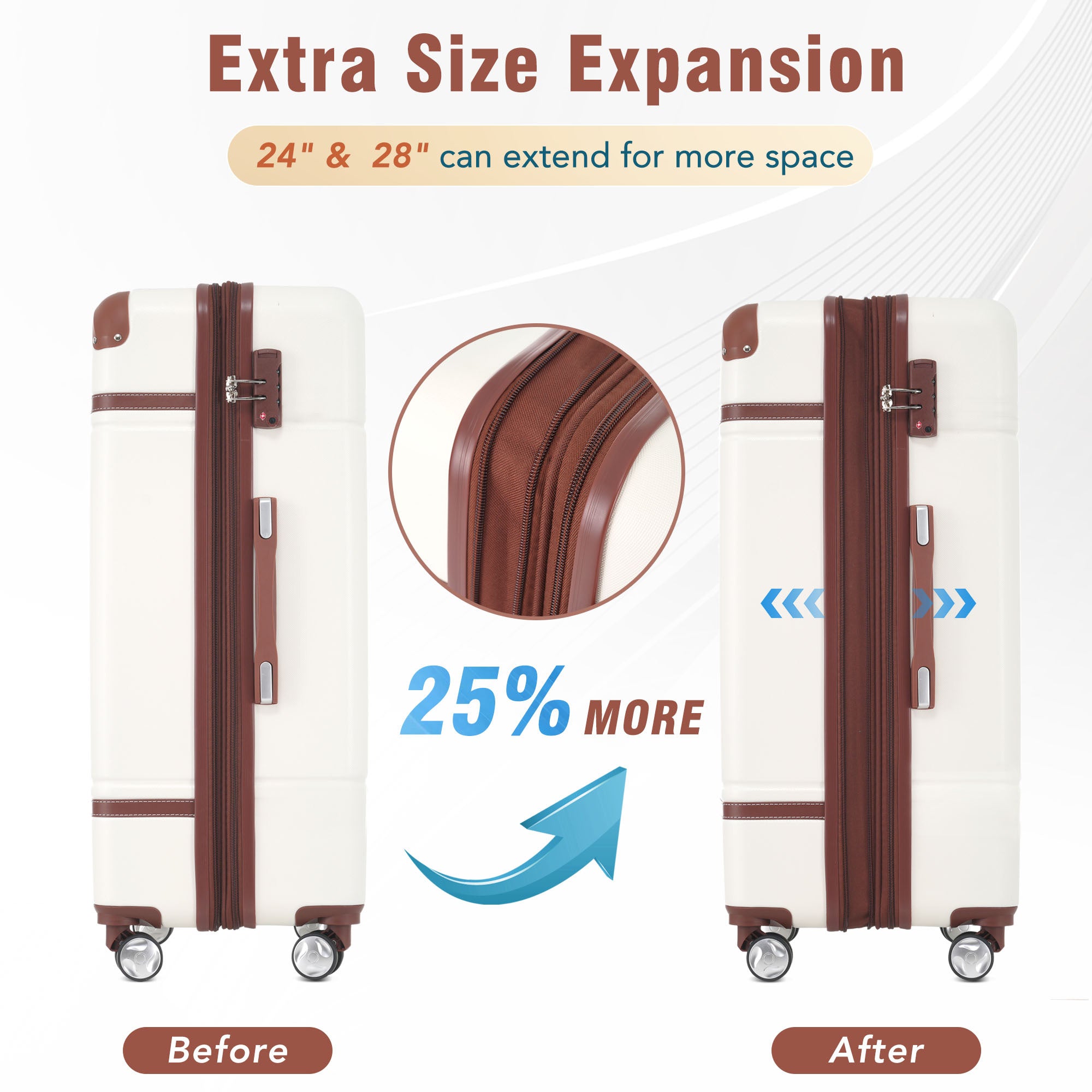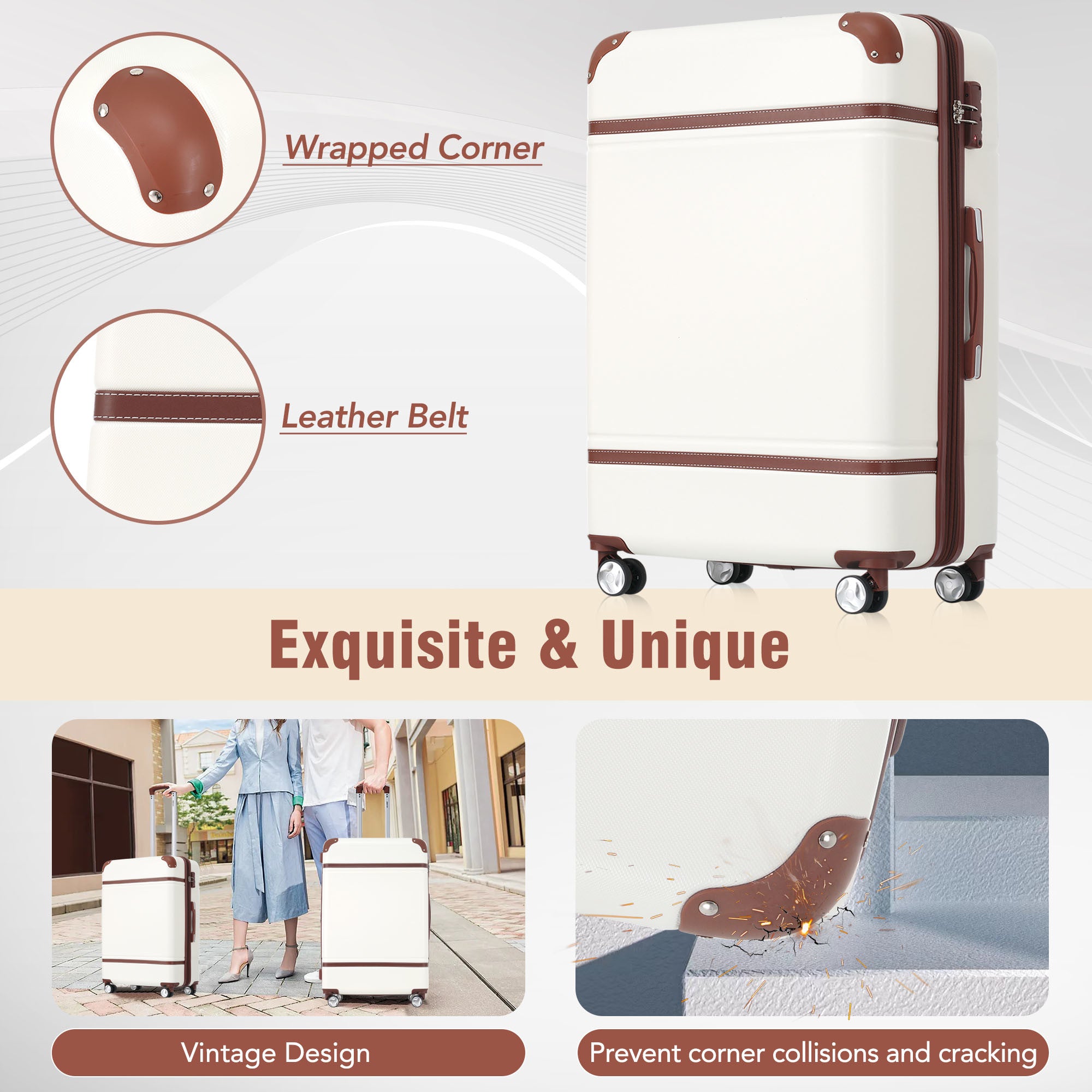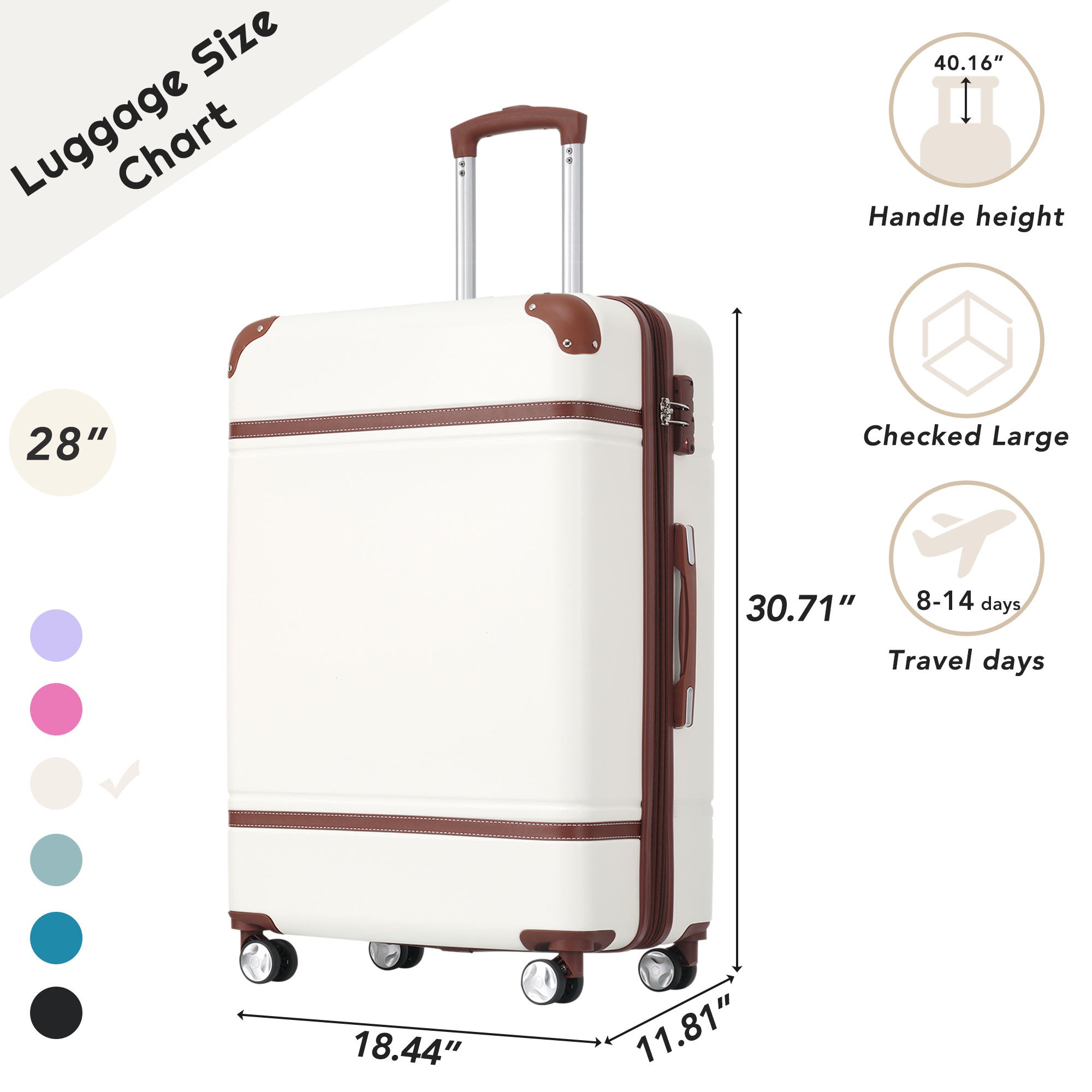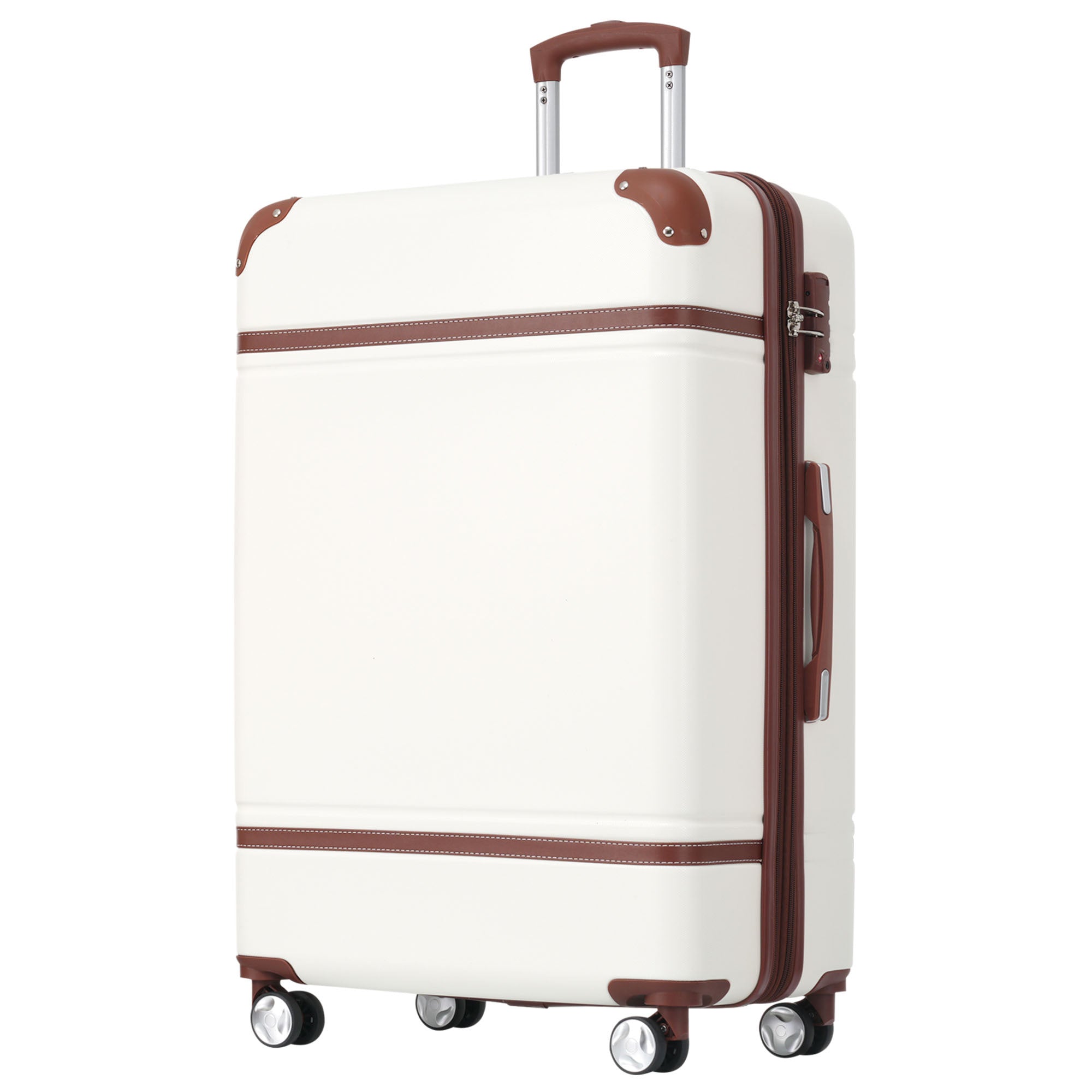 28 IN Luggage 1 Piece with TSA lock, Expandable Lightweight Suitcase Spinner Wheels, Vintage Luggage, White