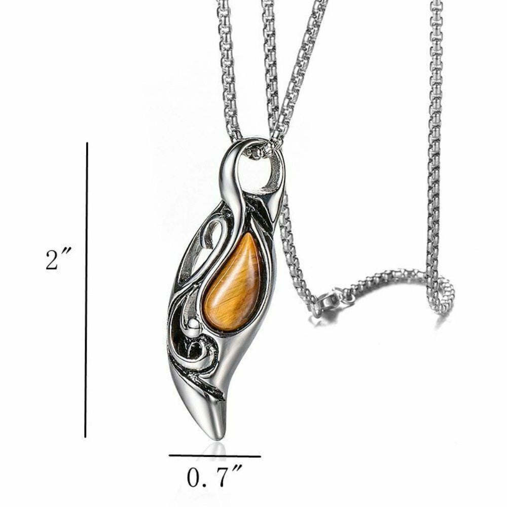 Drop Pendant with Tiger Eye stone Necklace is made from stainless steel; featuring a rope chain.
