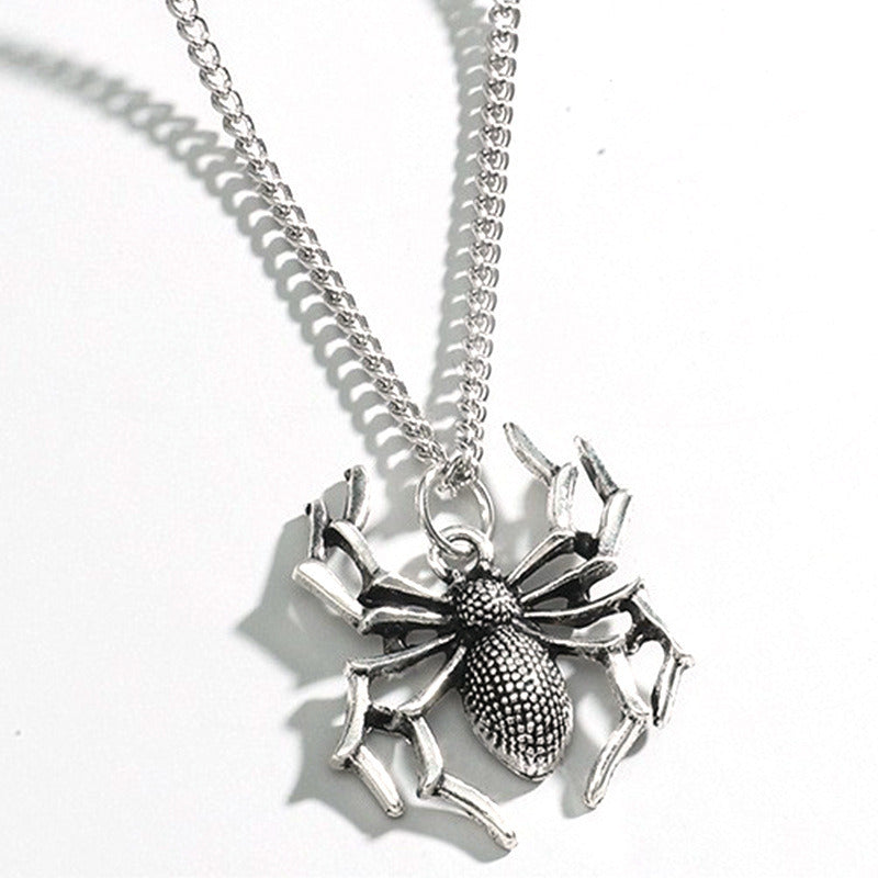 Fashion Spider Halloween Pendants Round Cross Chain Mens Necklaces Plated Silver Color Neck Chain Gothic Couple Streetwear Gifts