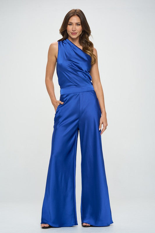 Stretch Satin Pants w/ Elastic Waist and Pockets