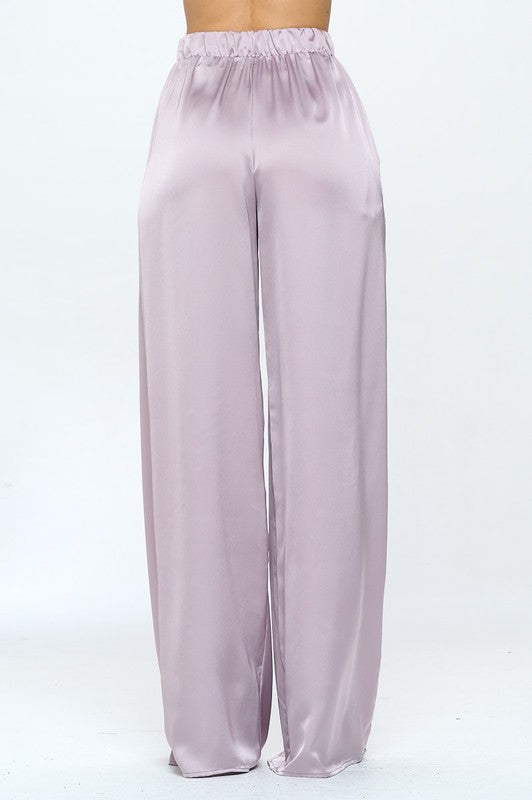 Stretch Satin Pants w/ Elastic Waist and Pockets
