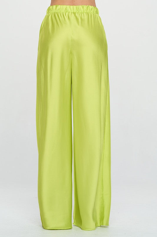 Stretch Satin Pants w/ Elastic Waist and Pockets
