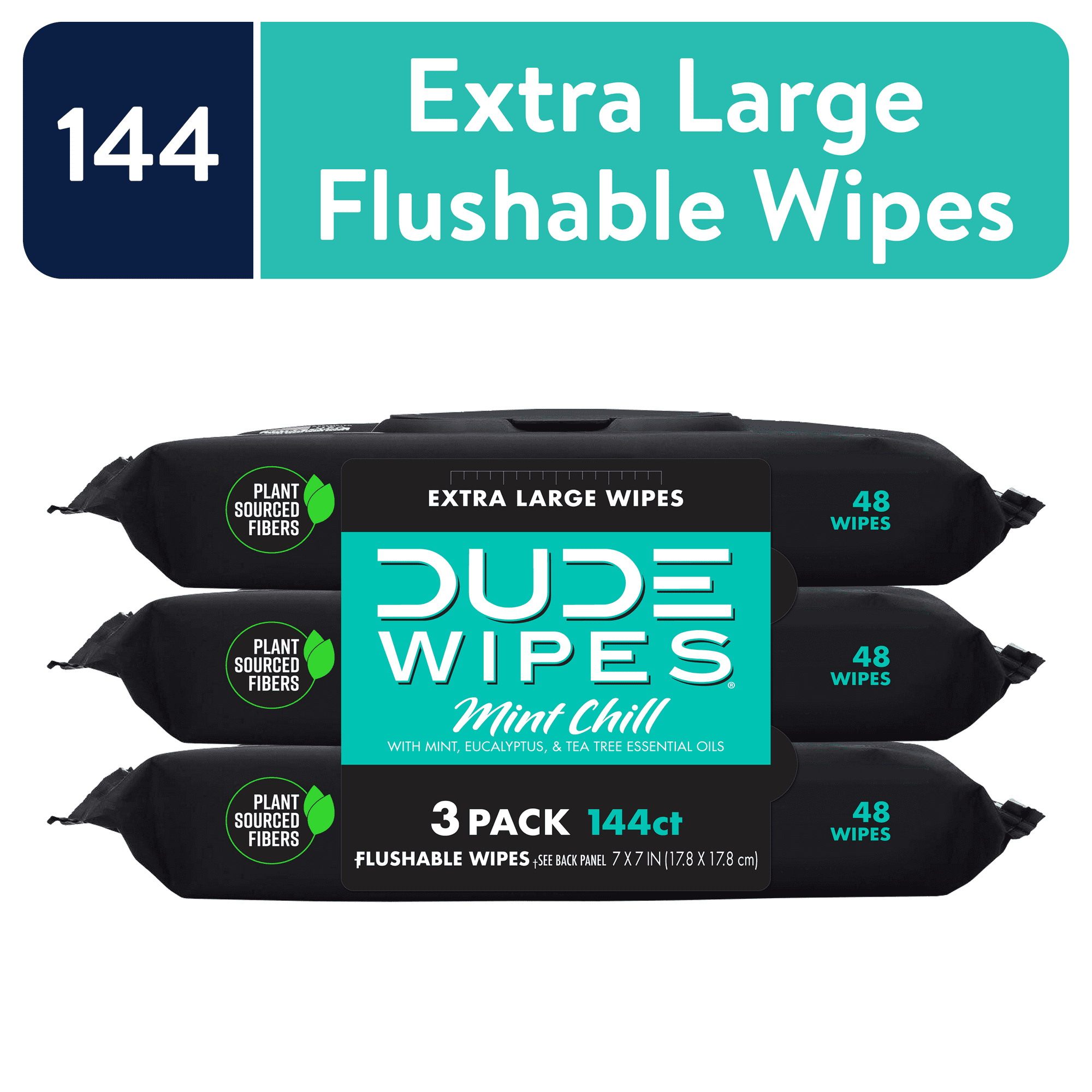 DUDE Wipes Flushable Wipes, Mint Chill XL Wet Wipes to Use with Toilet Paper, 48 Ct, 3 Pack