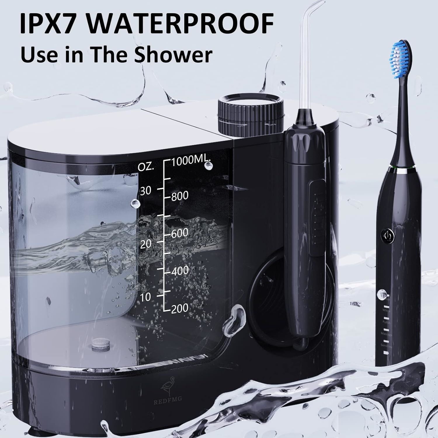 Water Flosser & Ultrasonic Toothbrush Combo - Extra Capacity Electric Water Toothbrush ,7 Jet Tips & 4 Brush Heads, 1000ML Detachable Water Tank, IPX6 Waterproof