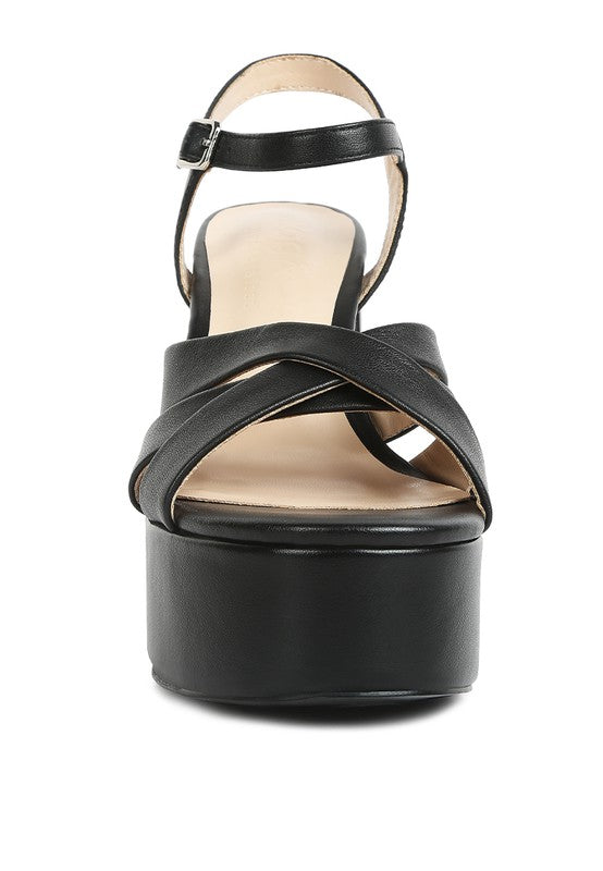 De-Vil Crisscross Straps Slim Block Heel Sandals