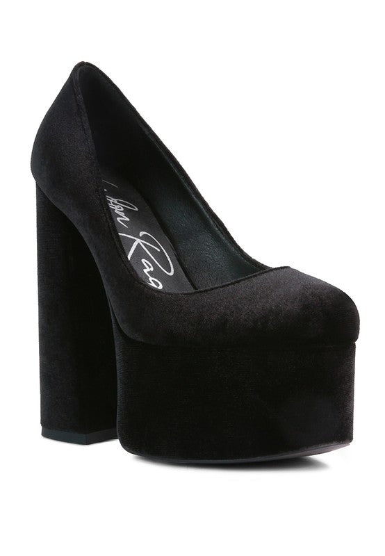 Old Novelty Platform Heel Velvet Pumps
