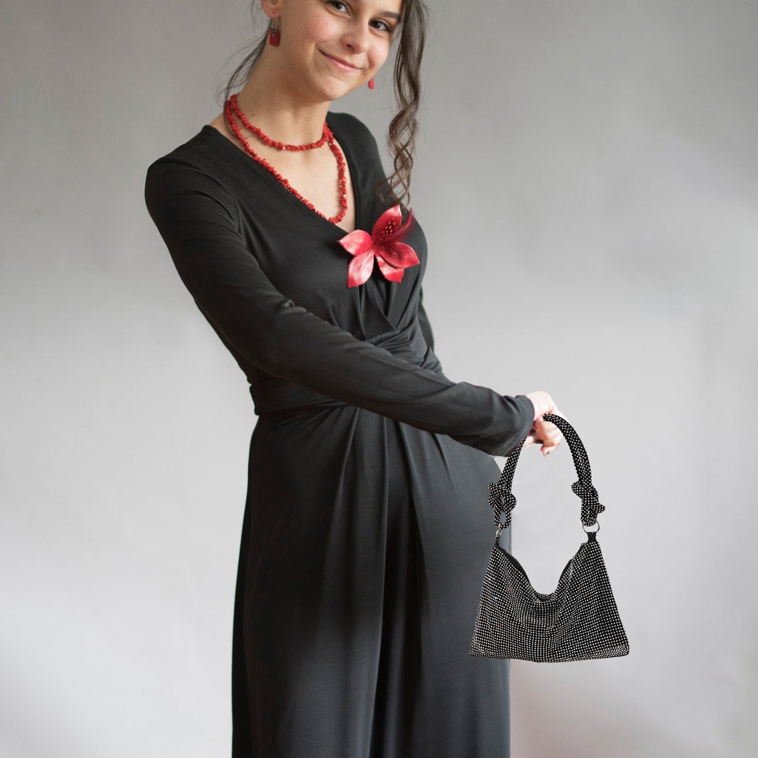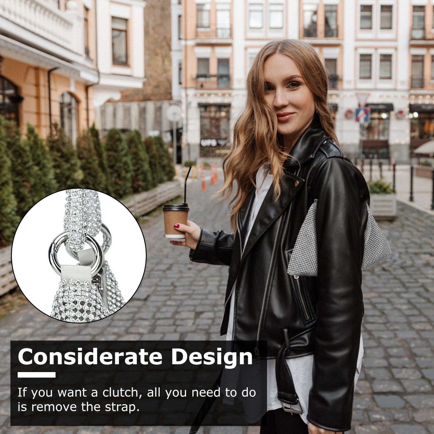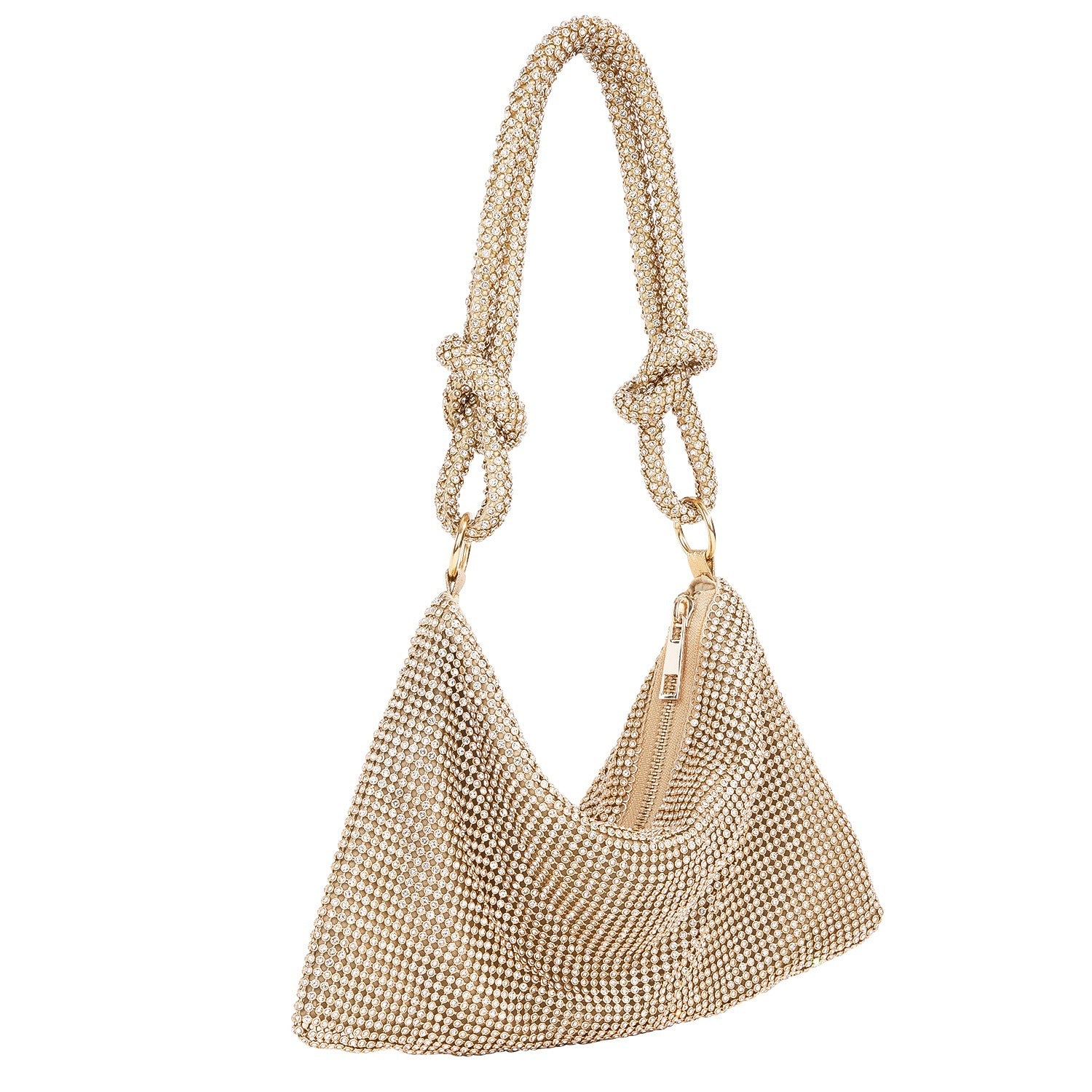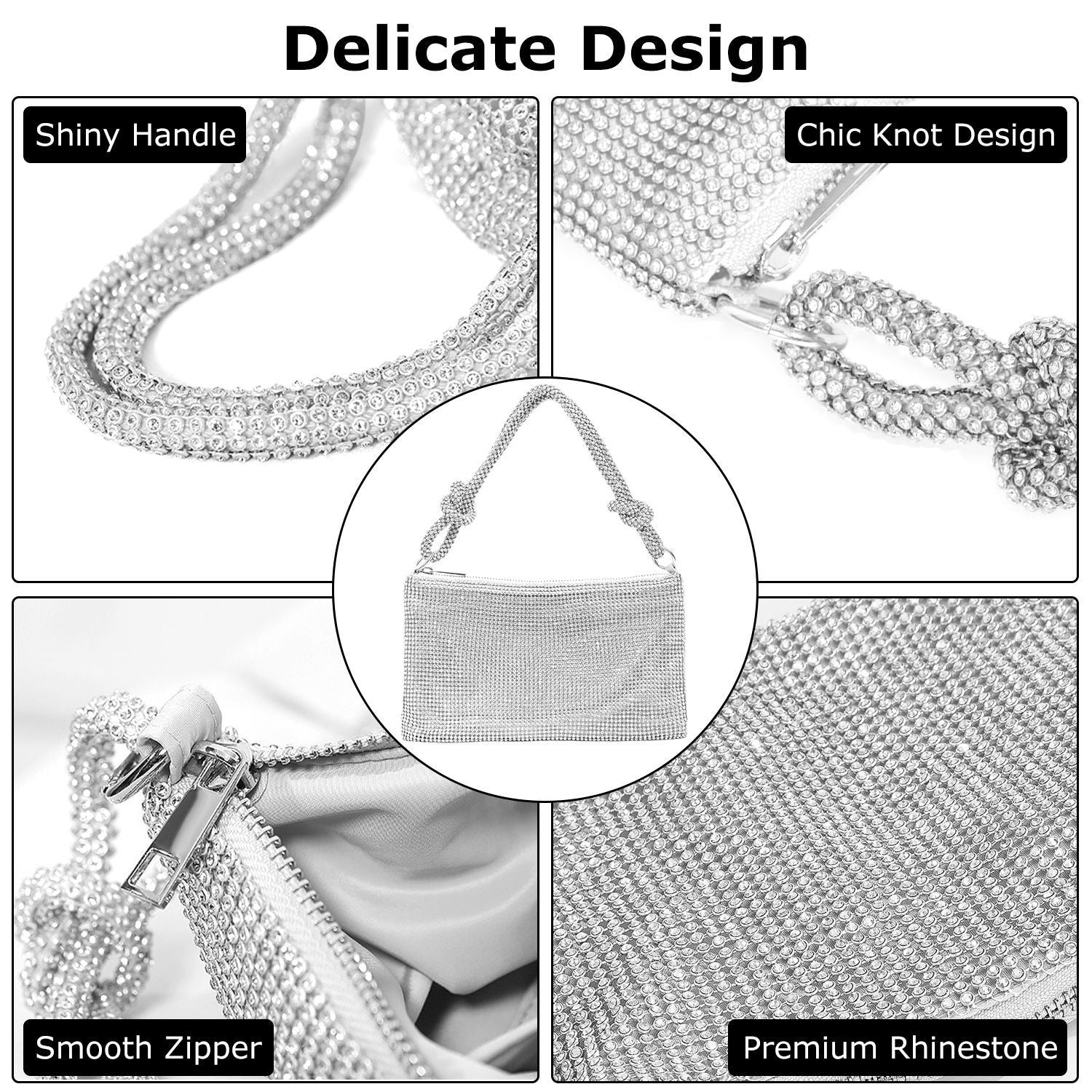 *Unique Design*:The knots on the handle and the slouch of the purse give it a very modern vibe. The metal zipper is easy to open and close; which protects your items from falling when you taking out of them. This crystal purse is shiny and elegant; makes you feminine and glamorous.