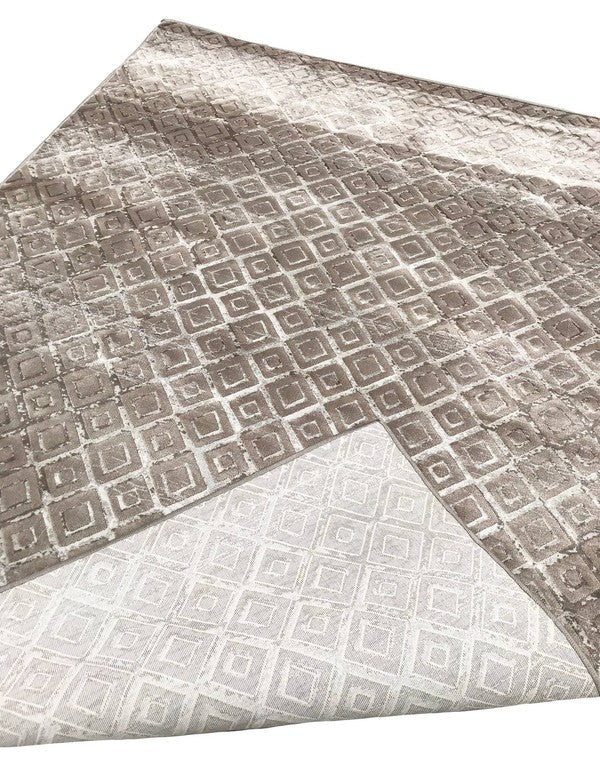 5' x 7'6'' Dark Beige Taupe Diamonds Silky Rug