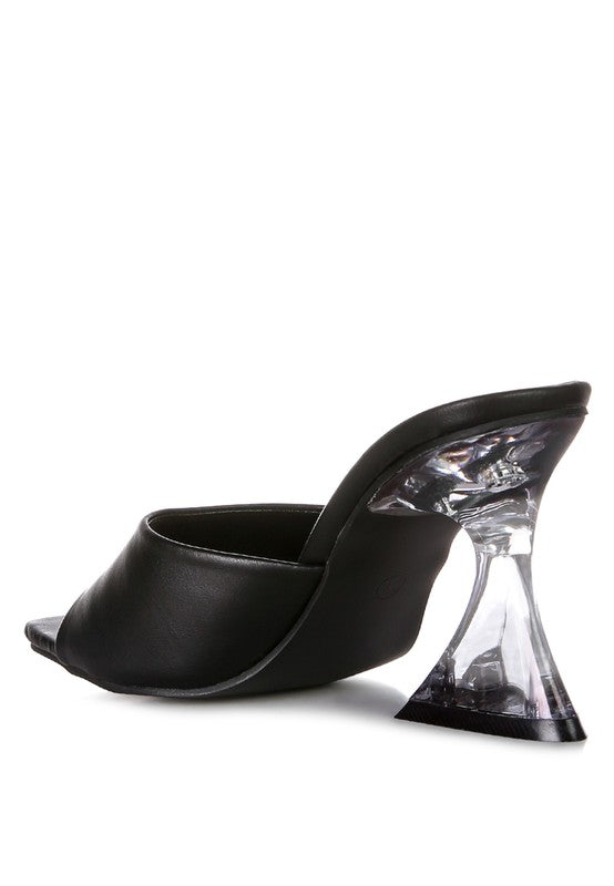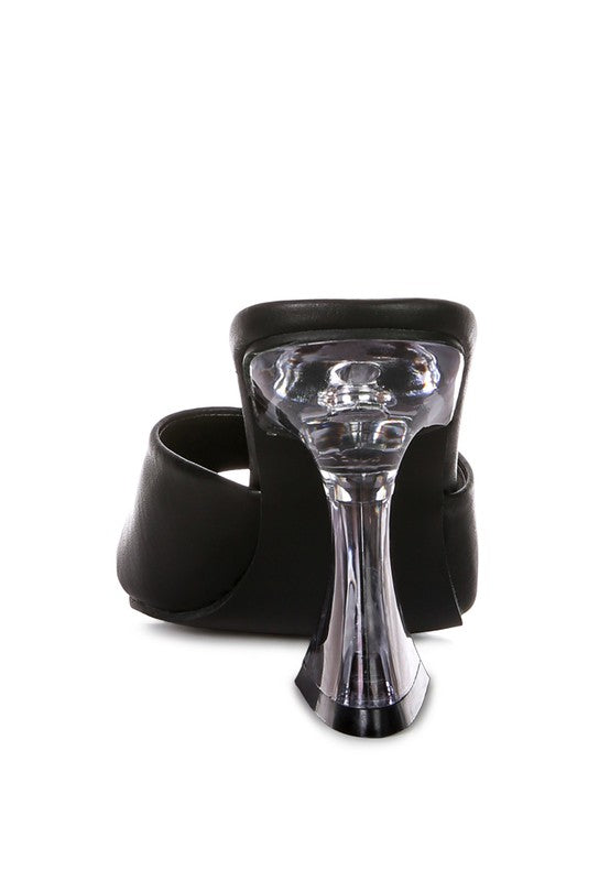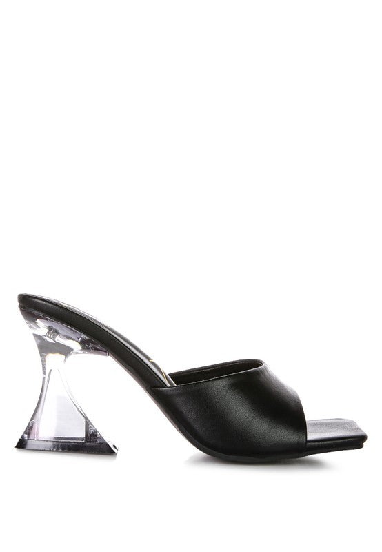 Mid-heel sandals in clear spool detail - the lightly cushioned insole cuts strain. The solid tone square cut toe casual sandals is everyday casual wear.
