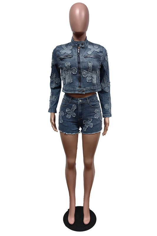 FAHION DENIM TWO PIECE SHOTR SET