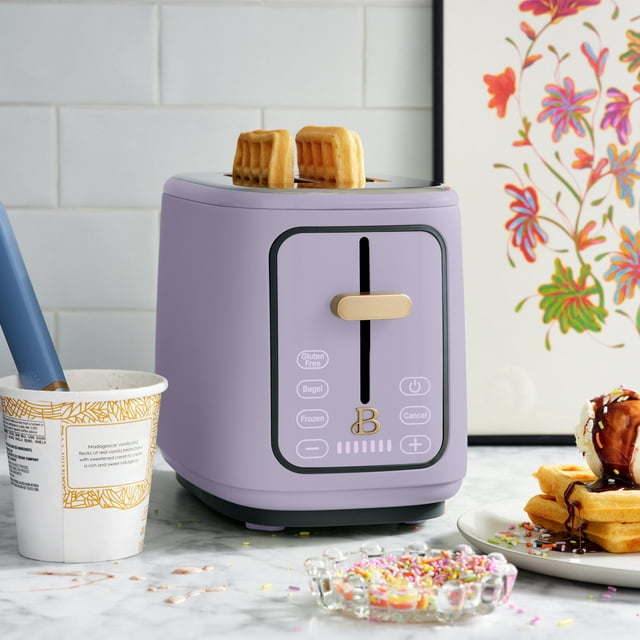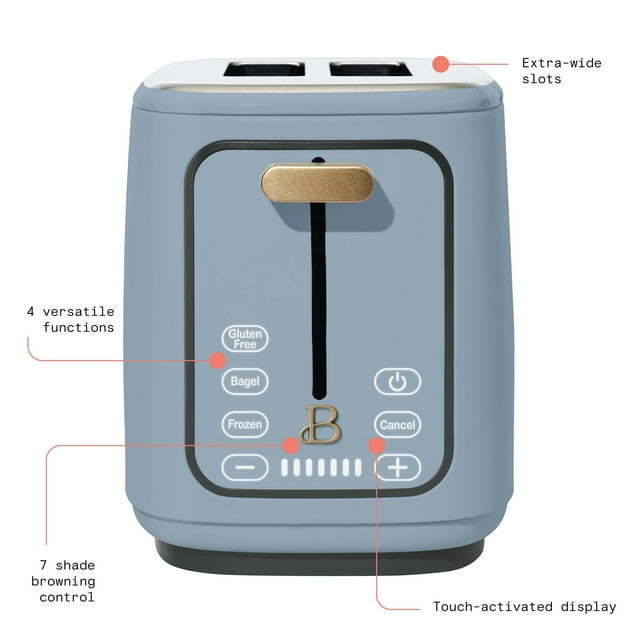 Toast just the way you want it. The 2-Slice Toaster with Touch Activated Display features 7 settings and a browning control with convenient preset buttons, including Bagel, Frozen and Reheat. Thoughtfully designed with sleek touch-activated illumination and our signature gold accents, the Toaster is made for your kitchen and your lifestyle, complete with an LED countdown and extra wide, self-adjusting slots that fit a variety of breads and bagels. contemporary colors and modern silhouettes for high-performance appliances that look on your kitchen counter.