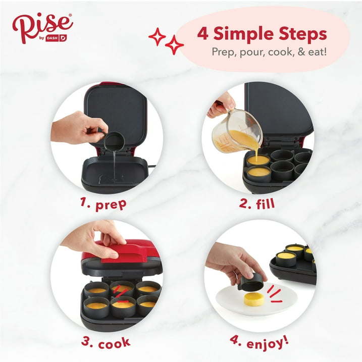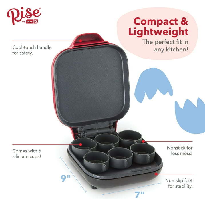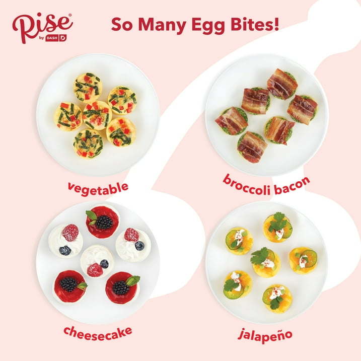 • Includes: Rise by Dash Egg Bite Maker, six Silicone Cups and access to our online Recipe Guide.
