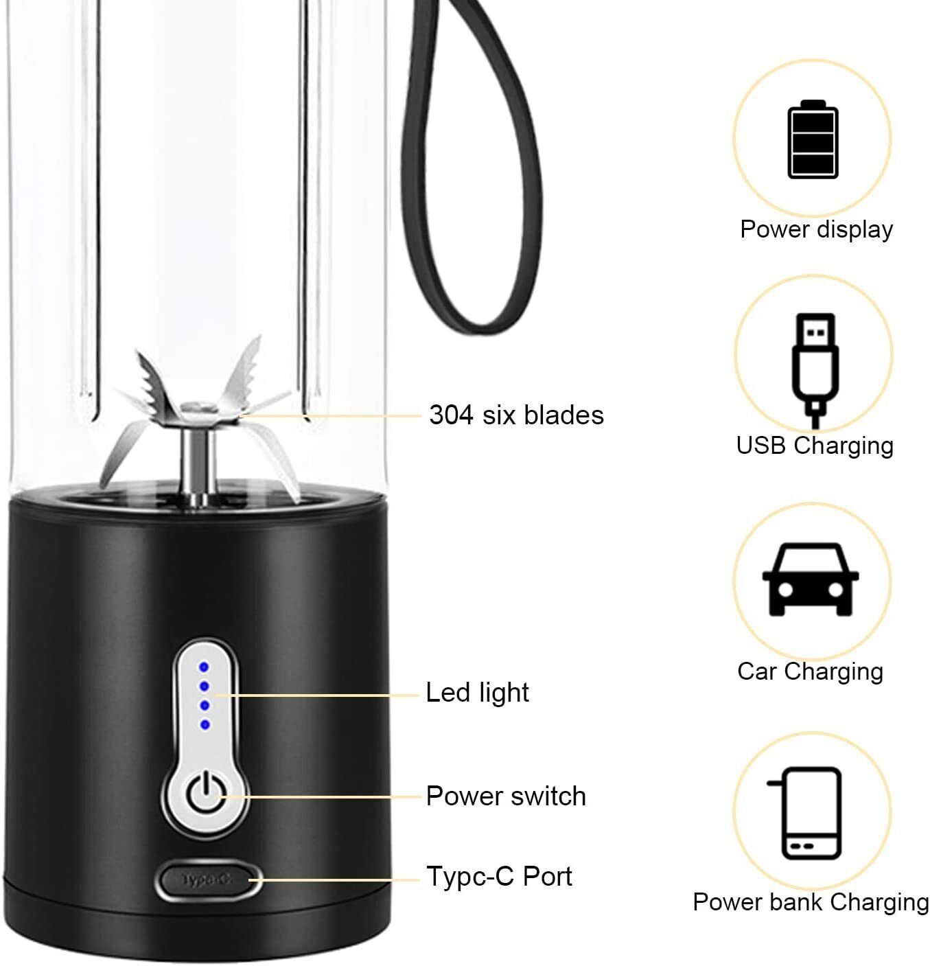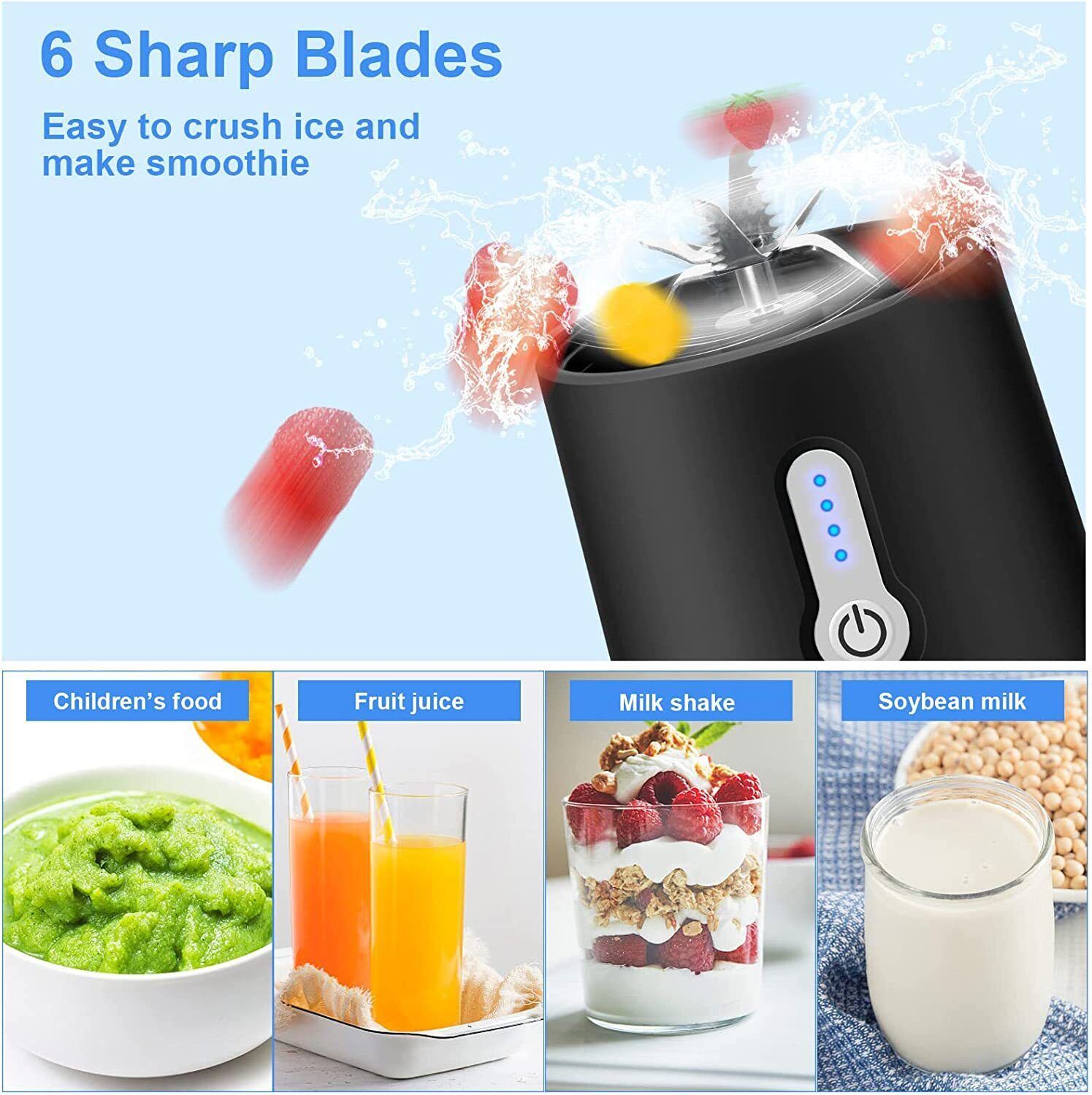 Powerful Blender The Built-in 4000mAh USB Rechargeable Battery and 6 Leaves Blades, with a higher level of rotation frequency about 24,000 times per minute, it only takes 40 seconds to bring you a cup of fresh smoothie, protein shakes, fresh juices. It can be charged by power bank, laptop, car charger or USB charger.