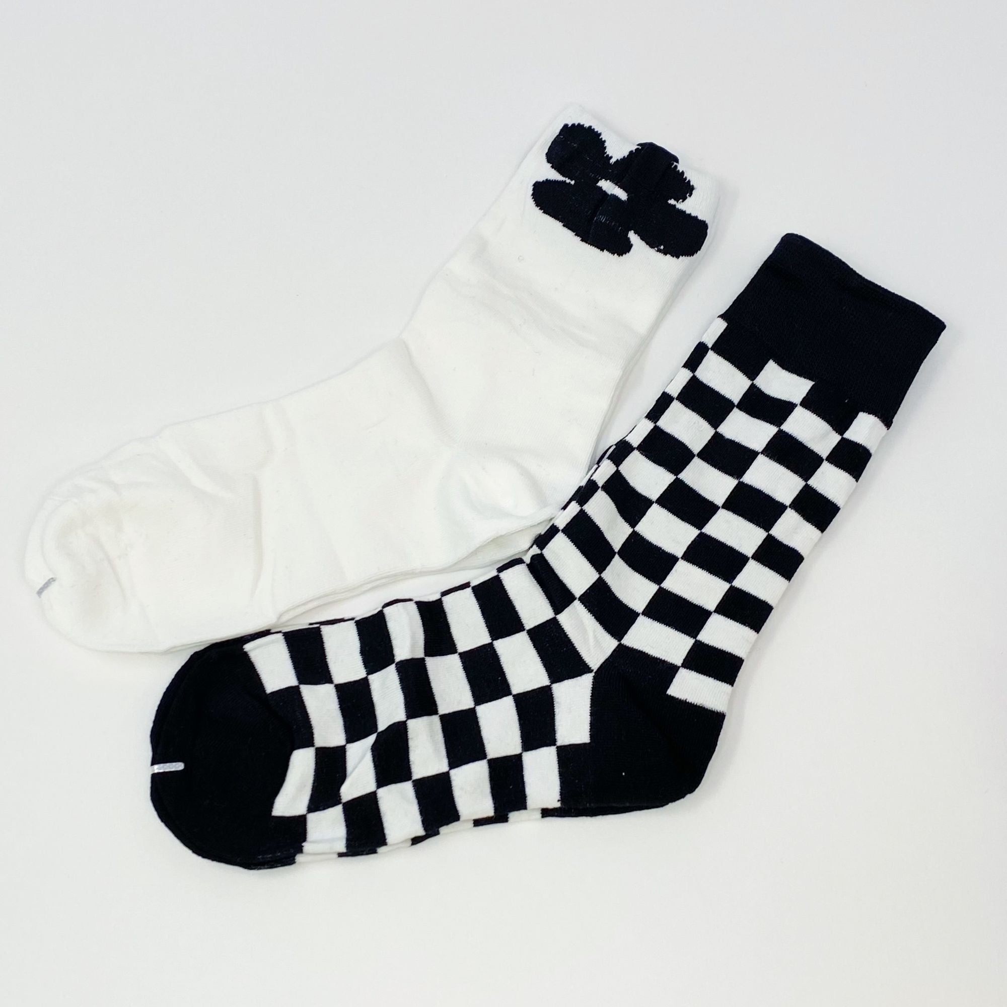 Stylish pattern socks set! 2 pairs of trendy socks come in a set. Packaged in clear cello bag with Ellison + Young logo sticker in front.
