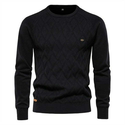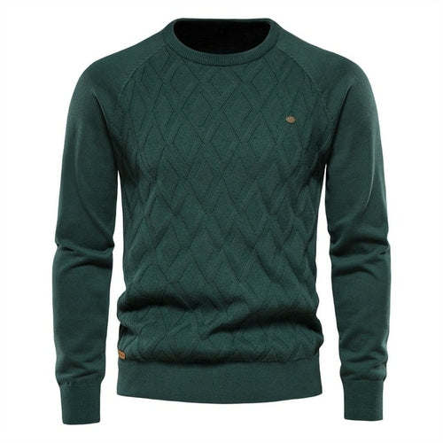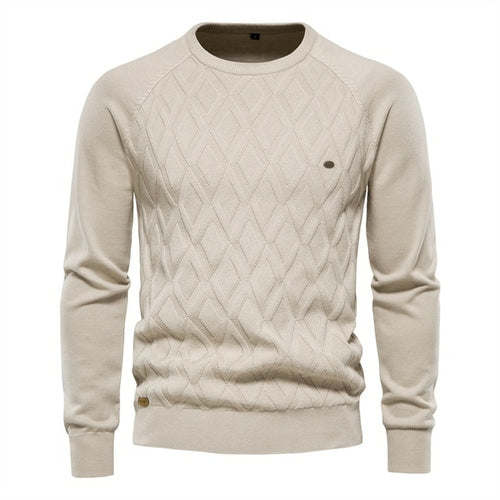 Aiopeson Argyle Men Basic Sweater Solid Color O-neck Long-sleeved