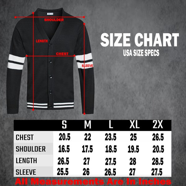 MENS TWO STRIPE CARDIGANBUTTON CLOSURE100 POLYESTER