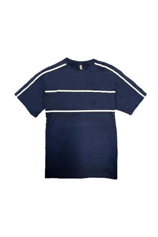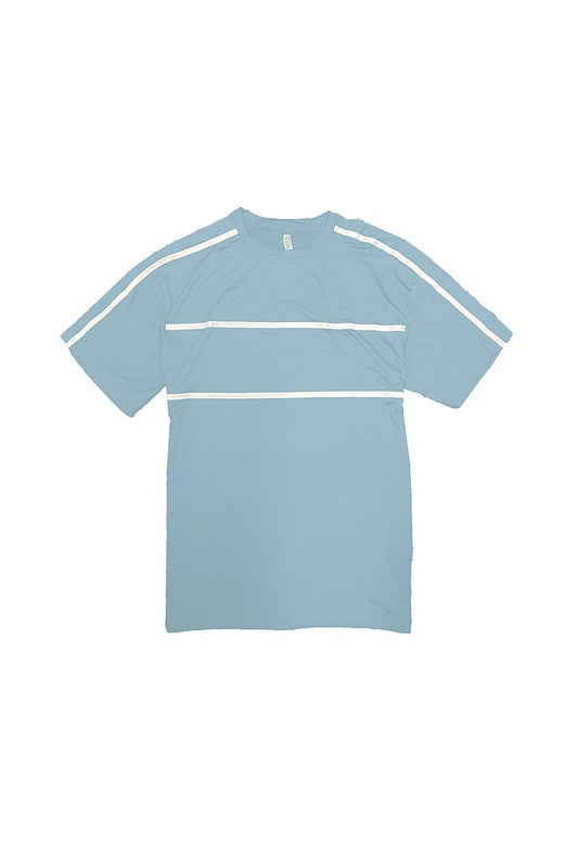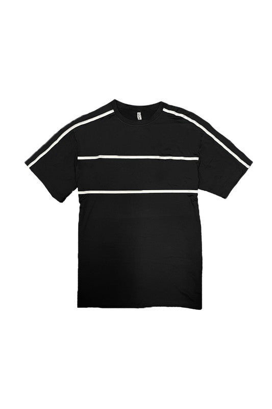 SOLID STRIPED TAPE TSHIRT95 POLY 5 SPANROUND NECKSHORT SLEEVE