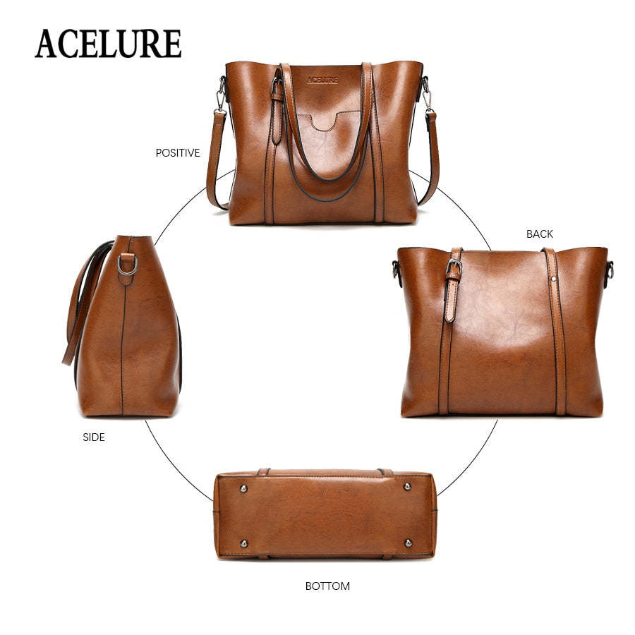 Women bag Oil wax Women Leather Handbags Luxury Lady Hand Bags With Purse Pocket Women messenger bag Big Tote Sac Bols