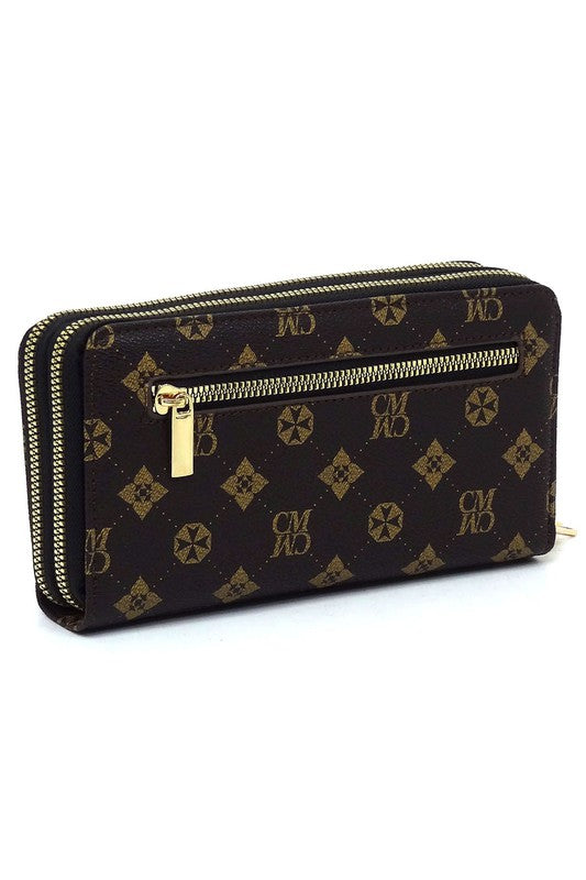 CM Monogram Double Zip Around Clutch Wallet Wristlet