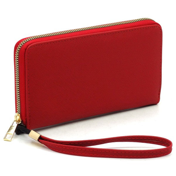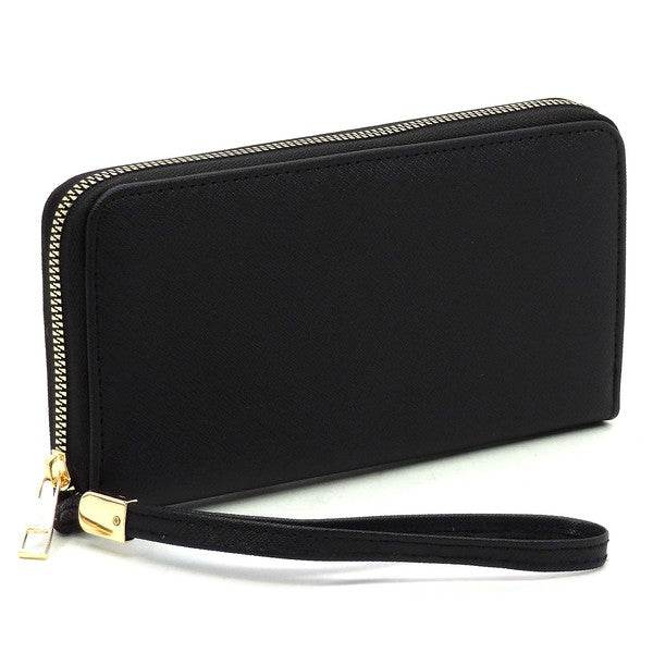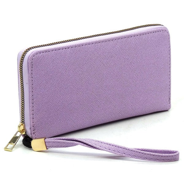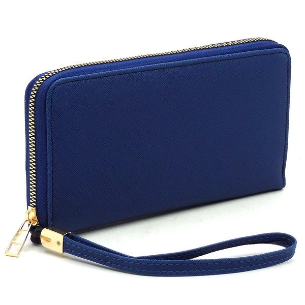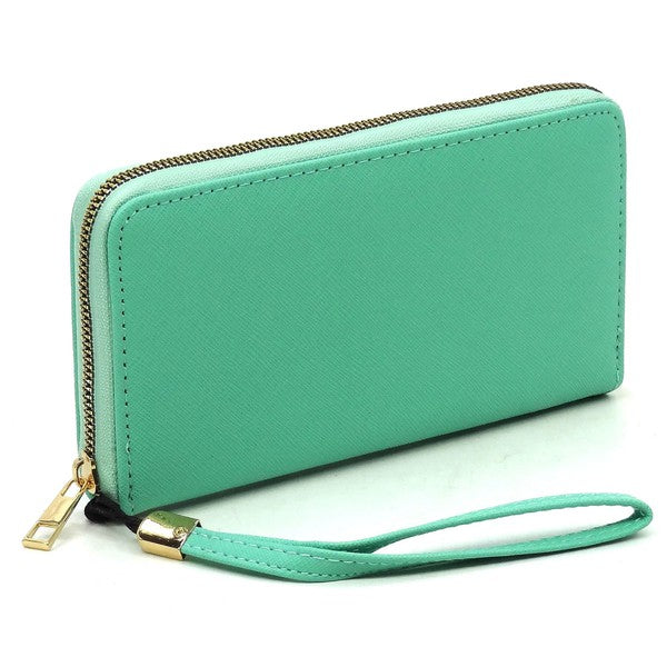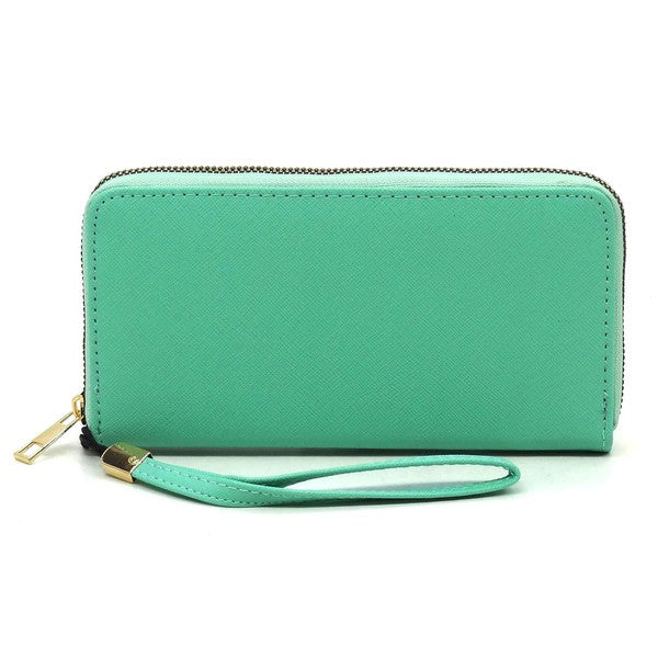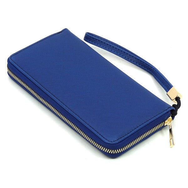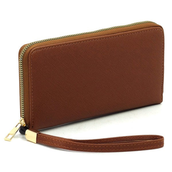 Saffiano Zip Around Wallet Wristlet Faux vegan leather Zip around closure Gold-tone hardware Detachable wrist band L 7.75 * H 4.25 * W 1